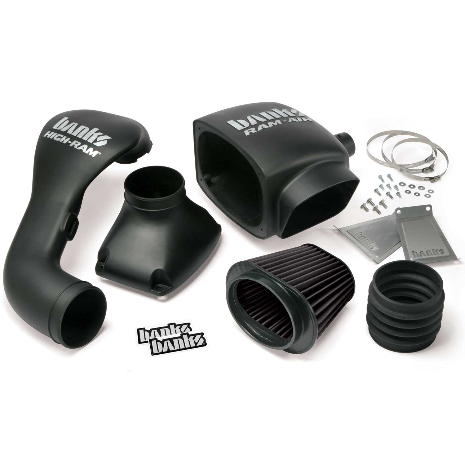 Banks Ram-Air Superiority. 5.4L V-8 engine only. Banks opens up your truck's breathing with a flowbench-developed and dyno-proven Ram-Air Intake System with a High-Ram intake plenum that outflows the stock setup by up to 63 percent. Ram-Air's filter has a huge outlet - deep filter pleats that maximize flow - a wide-open, streamlined design - and a complete air filter housing that draws in cool, under-vehicle air. Banks delivers cooler, denser air to the engine for greater power.