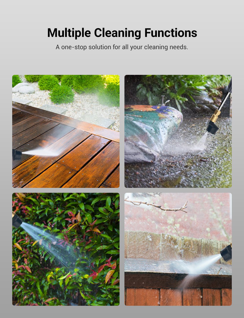 - Professional-Grade Performance: Each tool delivers professional results—19kPa vacuum suction, adjustable pressure washing, reliable jump starting.