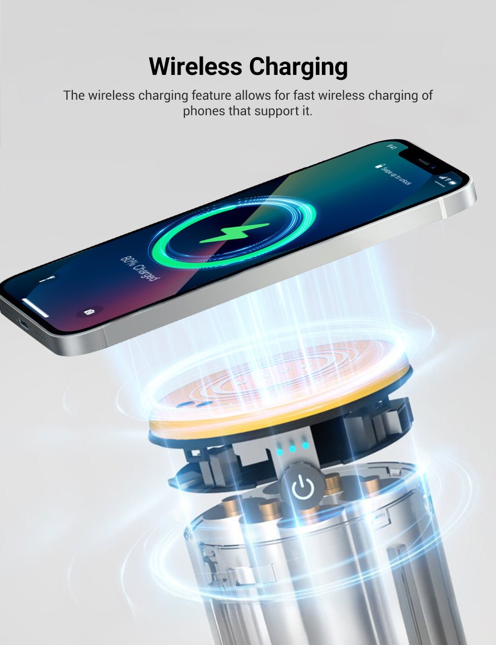 - Universal Interface Hub: USB, DC, and wireless charging ports work simultaneously—all devices can operate independently from vehicle power.