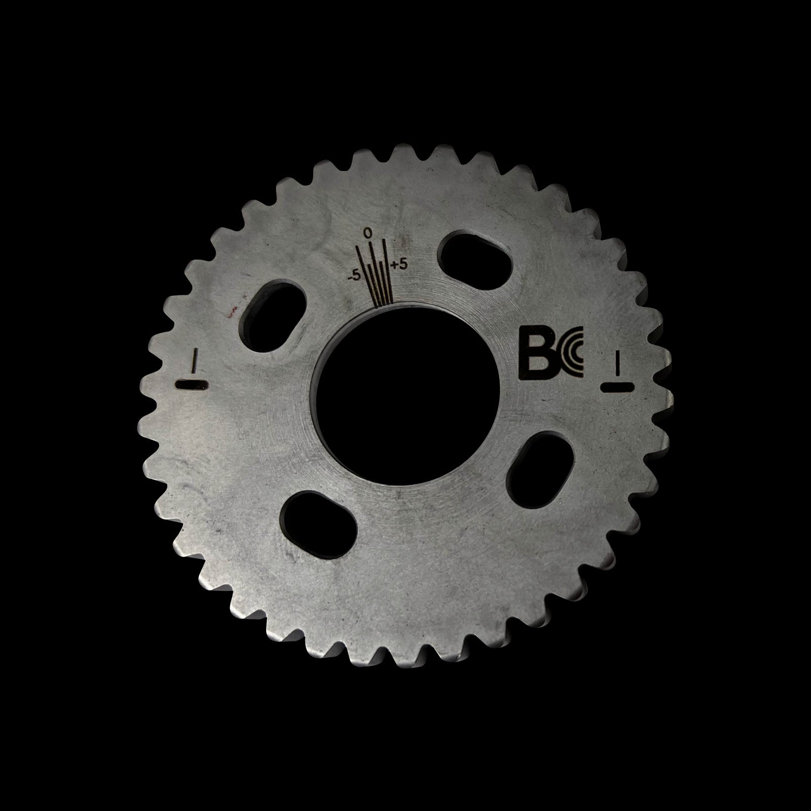 Machined from hardened steel alloy and fully compatible with the stock Polaris timing chain (BC has new Cloyes timing chains also), the BC adjustable cam gears for the Polaris RZR platform are the perfect way to gain top end or low end torque depending on how you dial in the gear settings. Separate intake and exhaust gears to avoid confusion, these gears allow for 5 degrees of advance or retard for both intake and exhaust cams with easy to read indicator marks. If running with BC cams, which feature 4 bolt holes per cam, the cams feature an indicator line for easy adjustment. If running, stock or another brand of cams, use only 2 bolts and make an indicator mark using a Dremel or scribe for accurate adjustment. Includes 4 ARP stainless steel bolts per gear for added clamping security. Fits all XP Turbo, XP1000, XP900 and 570 models. Intake gear only, sold individually