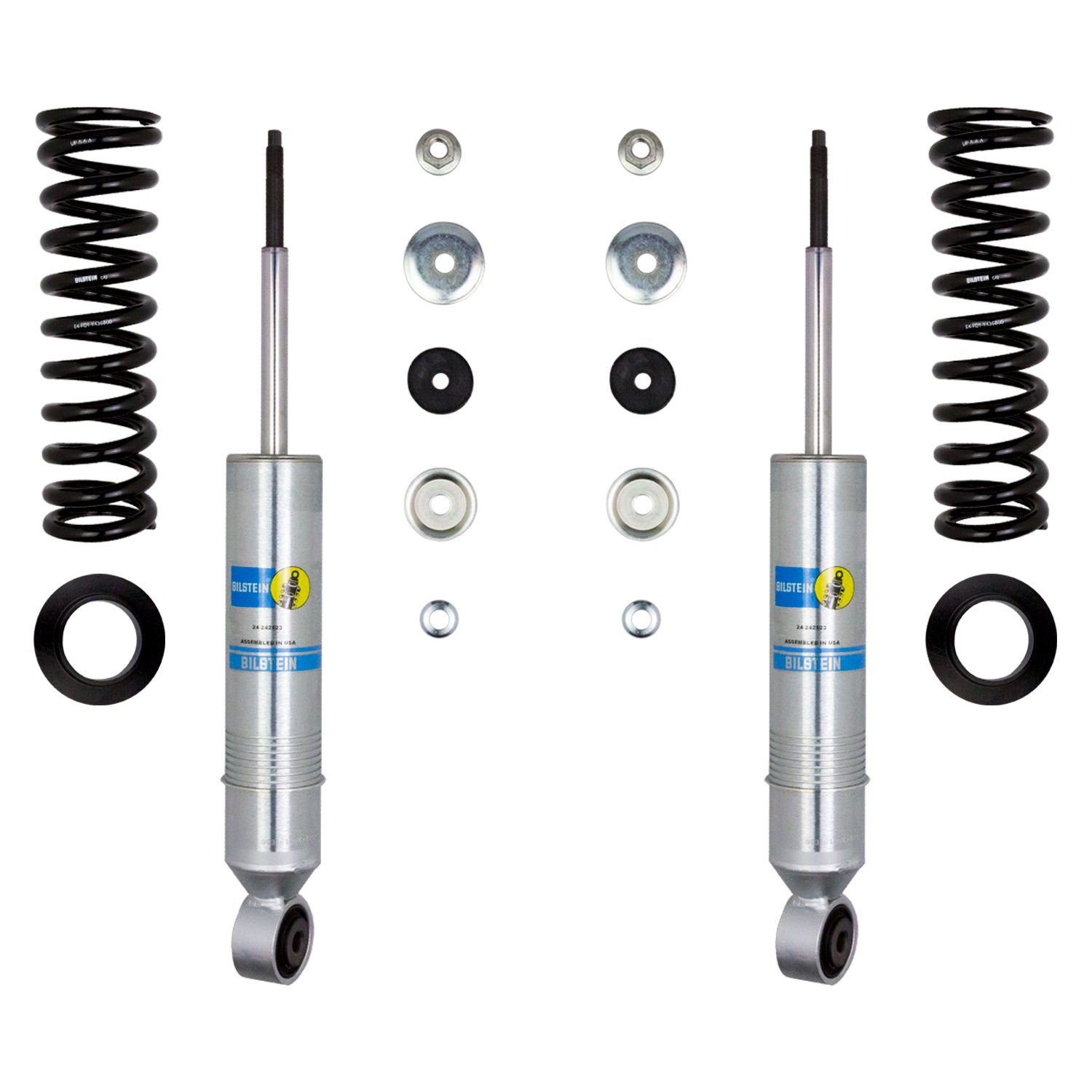 Bilstein B8 6112 leveling kits are designed to provide more ground clearance, allow for larger tires, and increase wheel travel. Multiple snap-ring grooves in the body allow for different spring seat positions, providing 0-2.75 inches of front lift (depending on application). These kits consist of (2) 60mm shock absorbers combined with (2) custom matched cold wound coil springs and (2) billet aluminum spring seats. The large 60mm digressive piston allows for increased damping control for optimal on-road and off-road capabilities. Experience the legendary Bilstein off-road experience with the best direct fit spring and shock kit for your light truck or SUV.