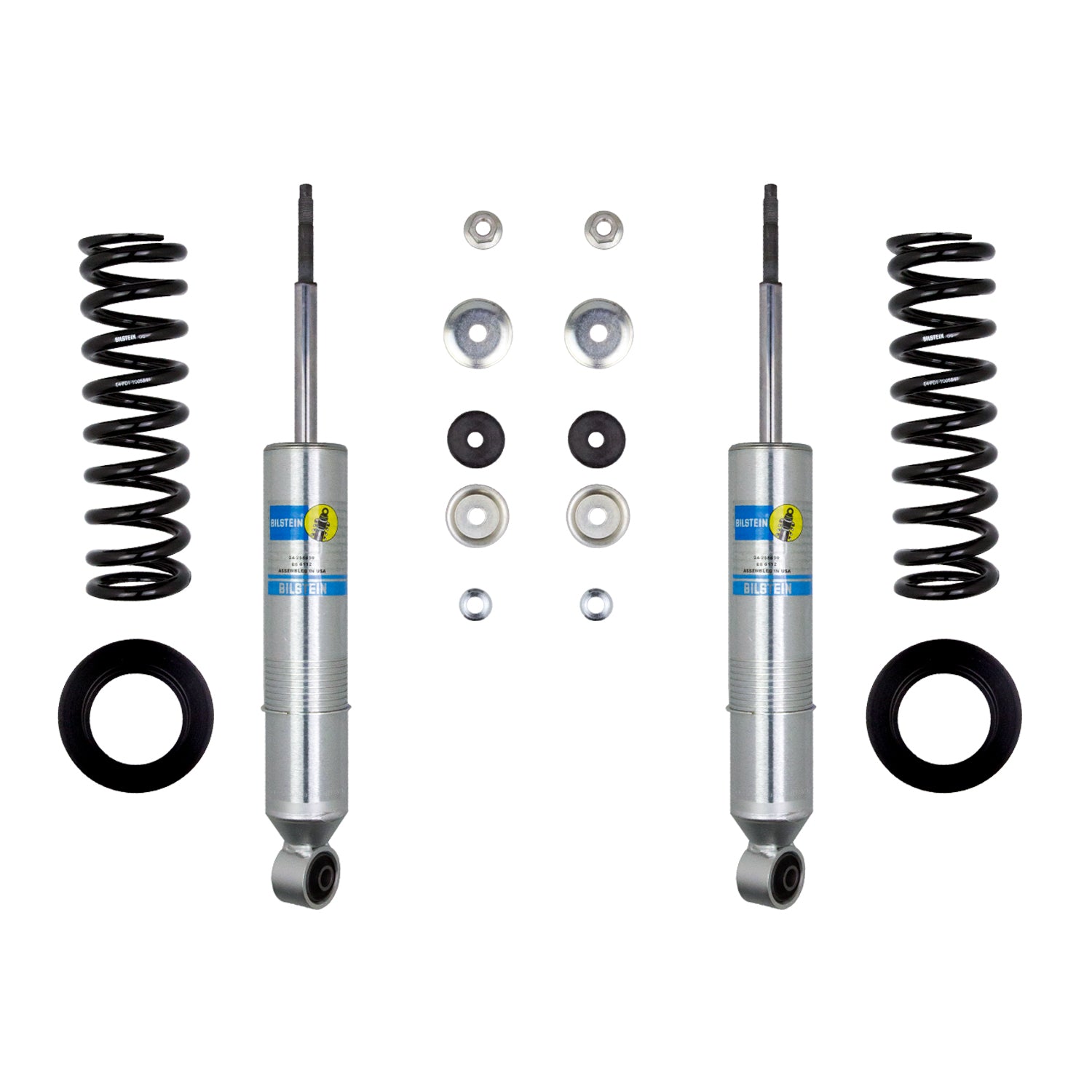 Bilstein B8 6112 leveling kits are designed to provide more ground clearance, allow for larger tires, and increase wheel travel. Multiple snap-ring grooves in the body allow for different spring seat positions, providing 0-2.75 inches of front lift (depending on application). These kits consist of (2) 60mm shock absorbers combined with (2) custom matched cold wound coil springs and (2) billet aluminum spring seats. The large 60mm digressive piston allows for increased damping control for optimal on-road and off-road capabilities. Experience the legendary Bilstein off-road experience with the best direct fit spring and shock kit for your light truck or SUV.