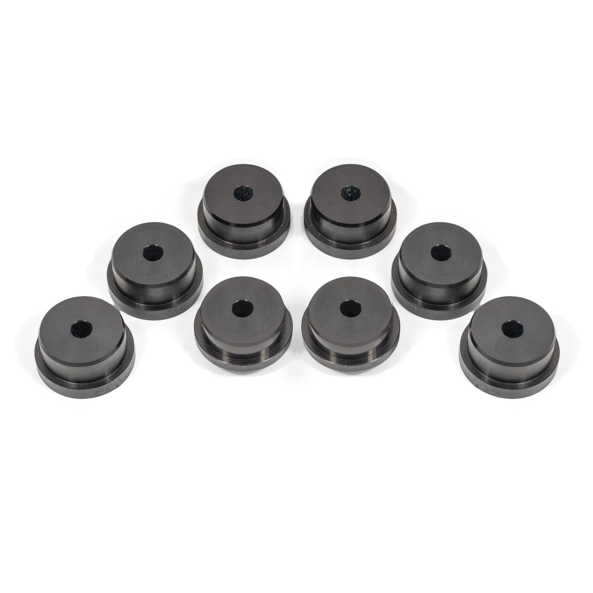 Eliminate rear cradle movement in your S550 Mustang with a Delrin Rear Cradle Bushing Kit from BMR Suspension. The OE bushings are designed with air pockets and are made from soft rubber. These ?voids?, coupled with soft material produce excessive differential movement during normal and aggressive driving. These bushings are CNC-machined from Delrin, which is known for its high stiffness, low friction and excellent dimensional stability. This material eliminates deflection with only moderate increases in NVH. Each bushing is machined to exact tolerances, which are designed by BMR. This allows for a perfect fit and increased performance for any driving style. The BMR Delrin Rear Cradle Bushing Kit (BK048) greatly increases the rigidity and stability of the chassis to provide maximum control and consistency necessary for any form of competition or high performance street driving. Designed for max effort street performance, drag race, and handling applications, BMR Suspension BK048 Delrin Cradle Bushings are the perfect wheelhop solution for any S550 Mustang where NVH is not a concern. BMR's Delrin cradle bushings replace the entire OE rubber bushing, eliminating differential movement by replacing the soft rubber OE bushings with solid two-piece Delrin bushings. These bushings remove all movement between the rear cradle and chassis, eliminating the deflection that occurs during acceleration, cornering, and braking. This reduces wheelhop and increases handling stability, while giving you a much-improved overall feel in any performance driving situation. BMR Suspension's BK048 Differential Bushing Kit is available in black with zinc-coated hardware. Installation time is about 3-4 hours and may vary depending on stock bushing removal technique. Proudly made in the U.S.A.!