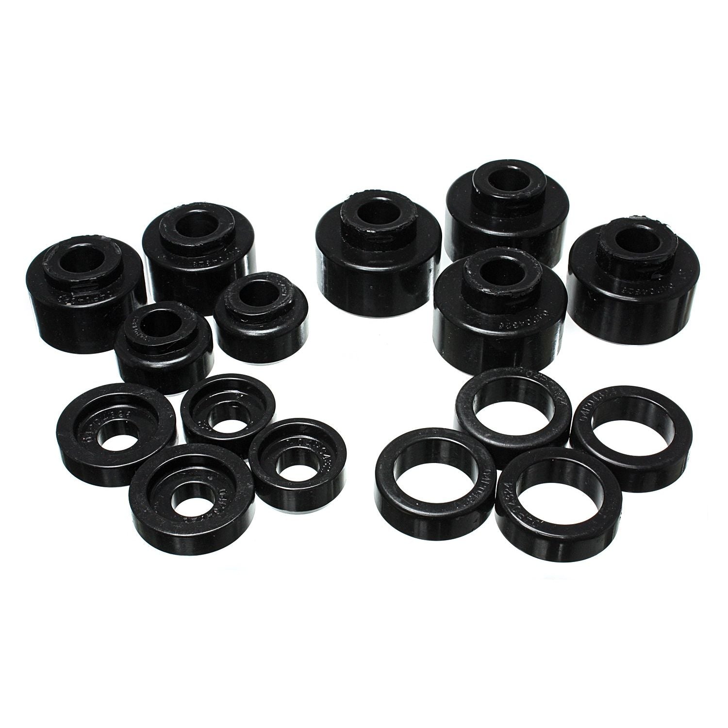 Will replace distorted and worn-out original rubber mounts to maintain car body and truck cab to bed alignment. Original rubber mounts are so soft they often crack, distort, and crush so badly they often fall off! And aluminum body mounts are too harsh for street use that they tend to break and cause other components to break.Energy's specially formulated Hyper-Flex(TM) polyurethane cab and body mounts combine the best qualities of both: they're soft enough for a smooth ride, yet rugged enough for the most demanding road or track.Most sets have a strong zinc plated steel ring molded into them - for added durability and when the application requires it.