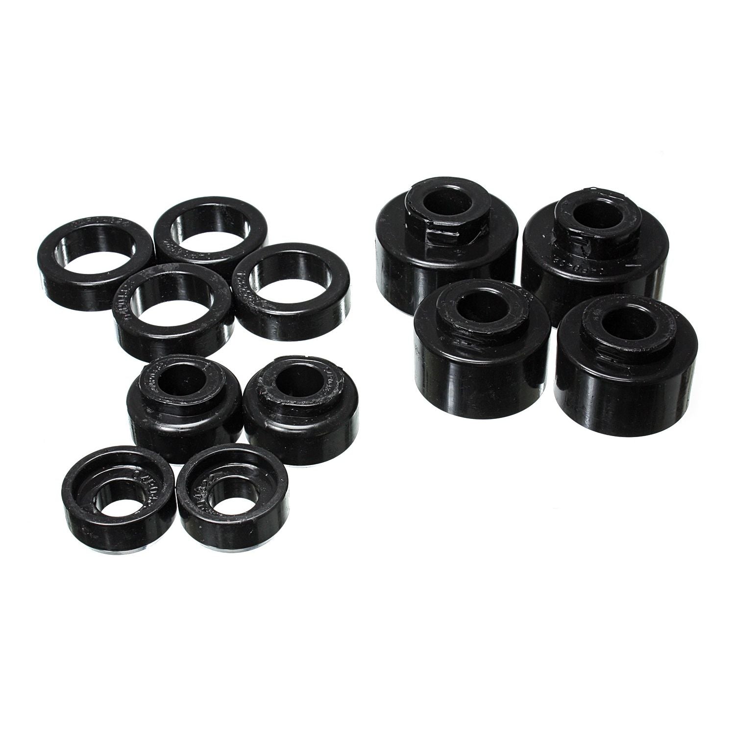 Will replace distorted and worn-out original rubber mounts to maintain car body and truck cab to bed alignment. Original rubber mounts are so soft they often crack, distort, and crush so badly they often fall off! And aluminum body mounts are too harsh for street use that they tend to break and cause other components to break.Energy's specially formulated Hyper-Flex(TM) polyurethane cab and body mounts combine the best qualities of both: they're soft enough for a smooth ride, yet rugged enough for the most demanding road or track.Most sets have a strong zinc plated steel ring molded into them - for added durability and when the application requires it.