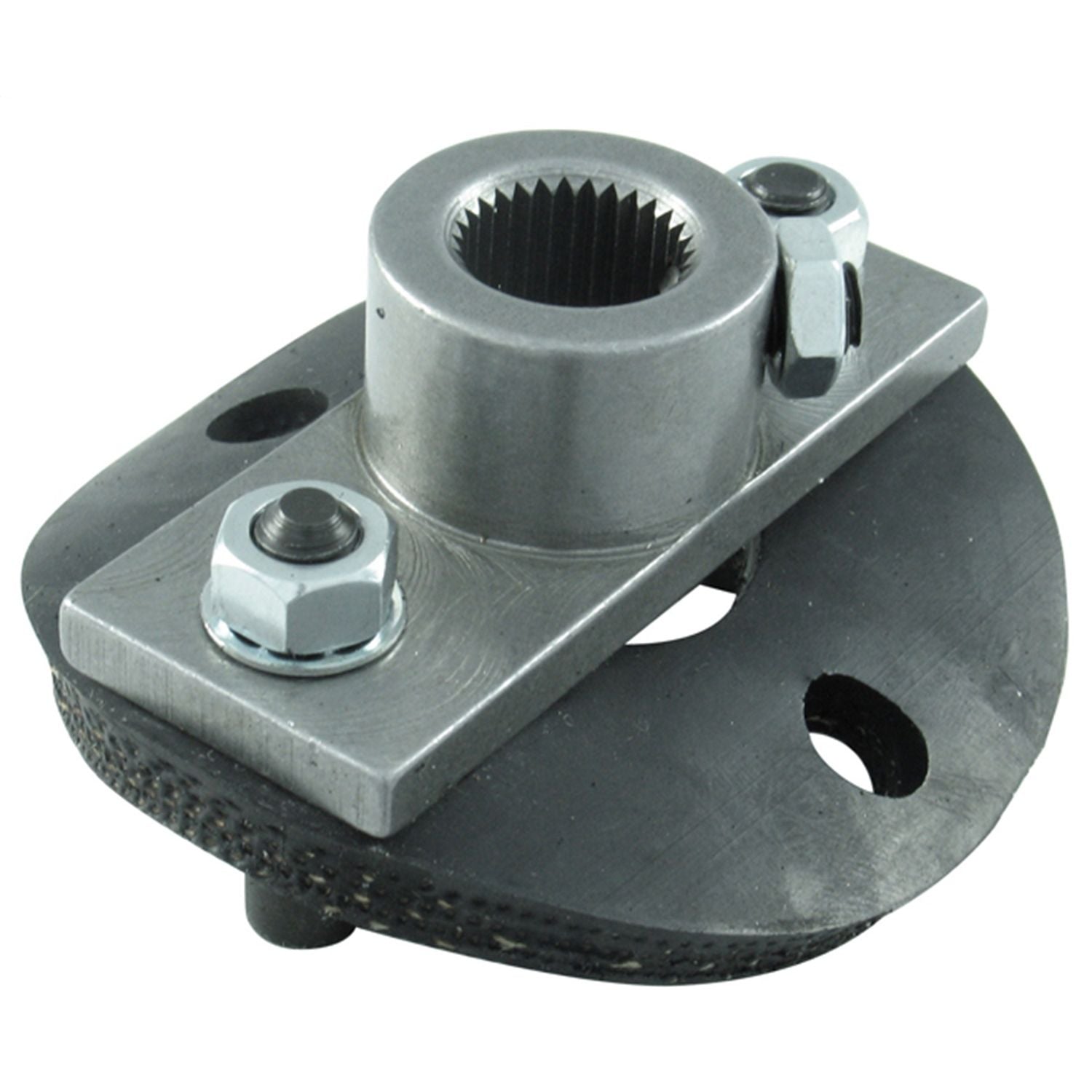 OEM Rag joint style steering coupler half. Includes metal steering box side of coupler and rubber disc with hardware.