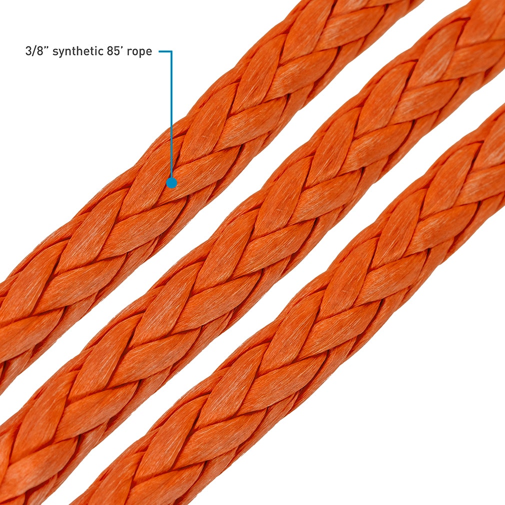 - 3/8” synthetic 85’ rope has a high-capacity strength to be used with the Borne Off-Road winch and comes with an anti-abrasive sheath to prevent damage for longer life expectancy