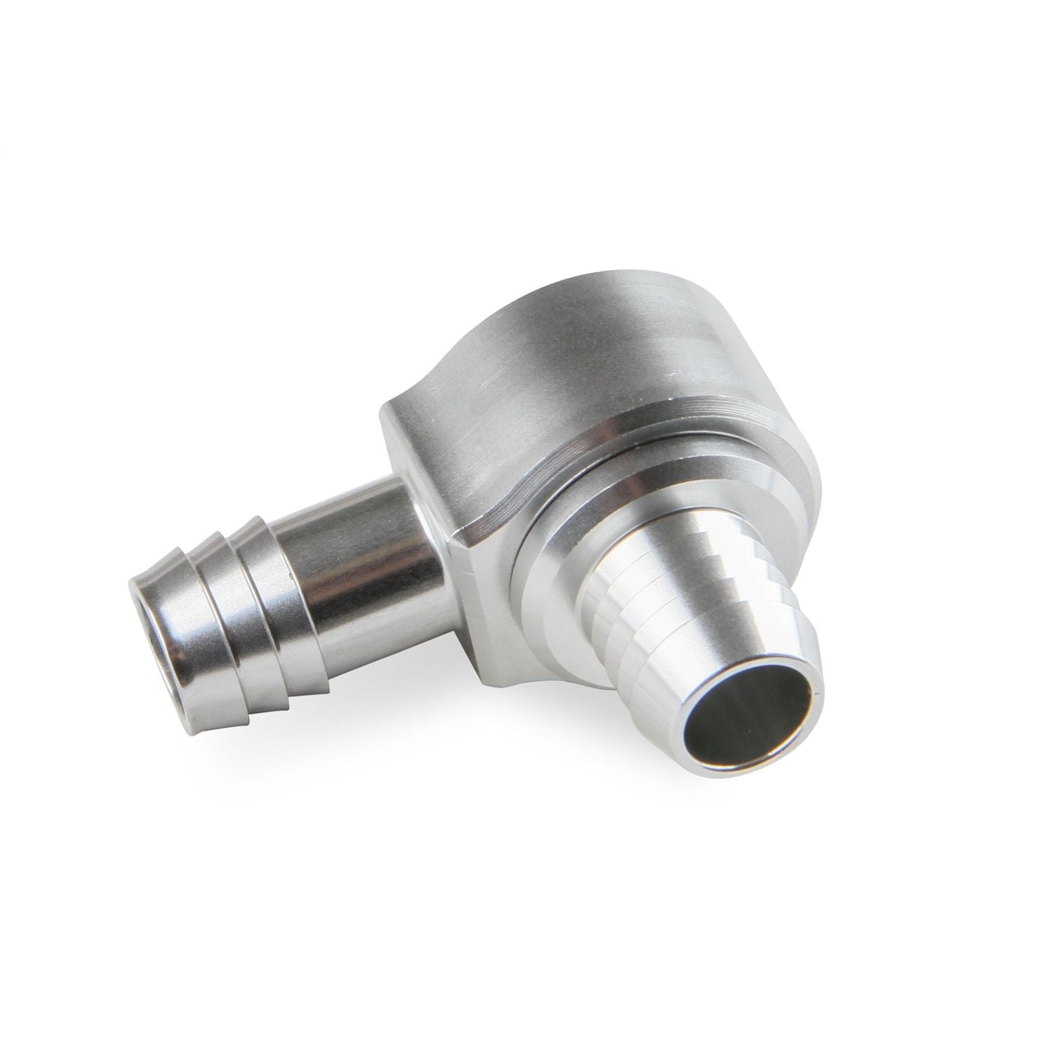Earl's billet aluminum brake booster check valve replaces the OEM plastic valve for a clean custom appearance. Choose from black or clear anodized finish & (3) vacuum hose options (3/8 in. hose barb, 1/2 in. hose barb, or -6 AN male flare). Fits most brake boosters or vacuum canisters w/ 13/16 in. port (inside diameter of the grommet on the brake booster).