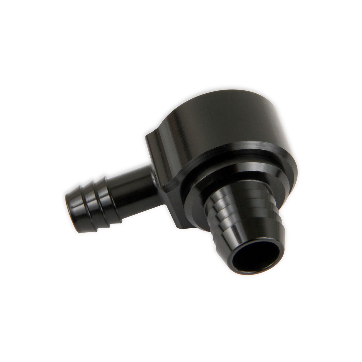 Earl's billet aluminum brake booster check valve replaces the OEM plastic valve for a clean custom appearance. Choose from black or clear anodized finish & (3) vacuum hose options (3/8 in. hose barb, 1/2 in. hose barb, or -6 AN male flare). Fits most brake boosters or vacuum canisters w/ 13/16 in. port (inside diameter of the grommet on the brake booster).