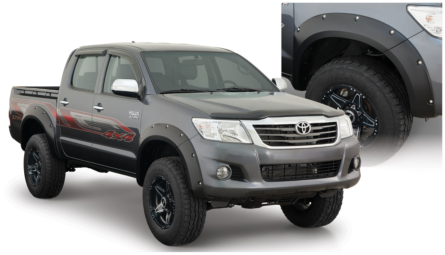 Bushwacker 31929-02 Black Pocket/Rivet Style Smooth Finish 4-Piece Fender Flare Set For 2011-2013 Toyota Hilux