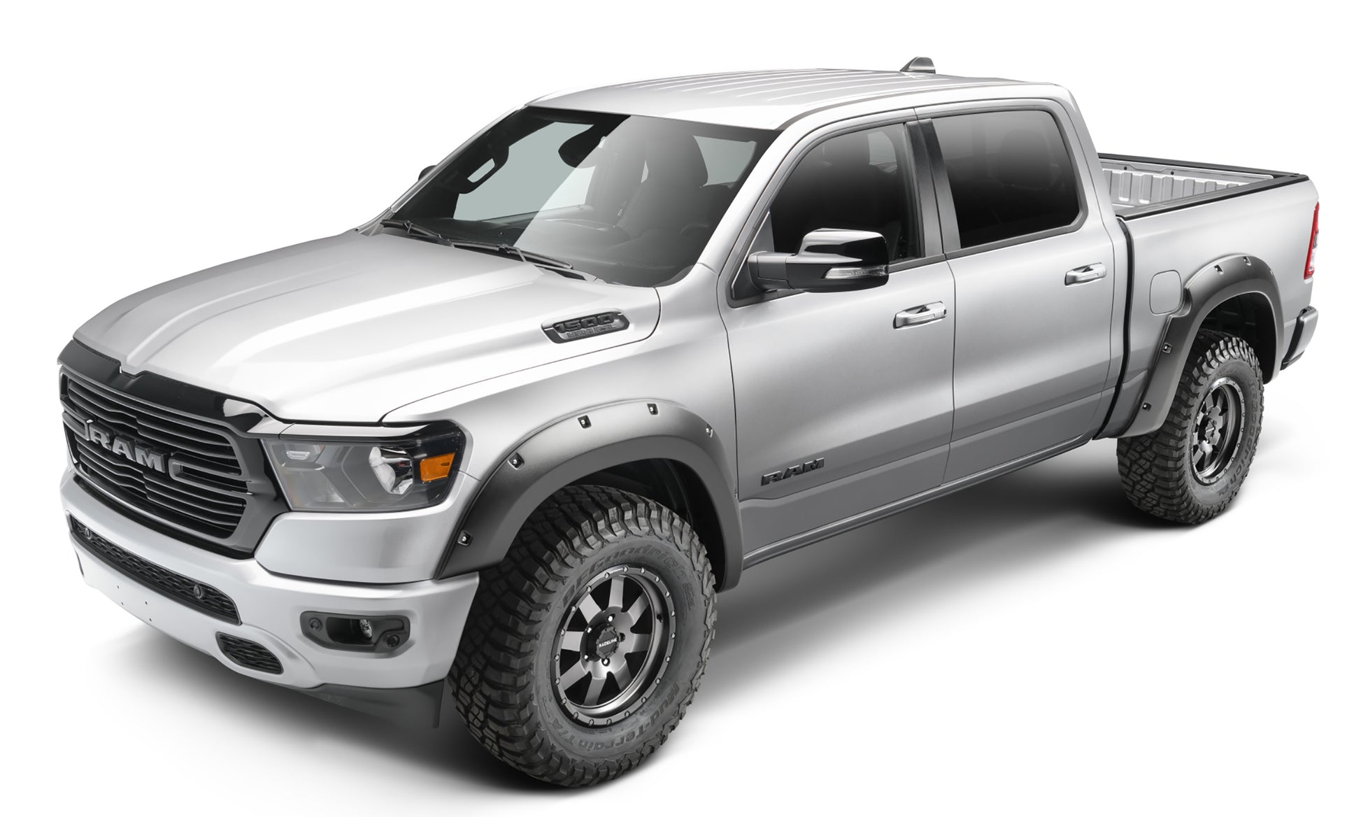 Bushwacker 50924-02 Black Pocket/Rivet Style Smooth Finish 4-Piece Fender Flare Set For 2019-2022 Ram 1500; Will Not Fit Rebel And TRX Models