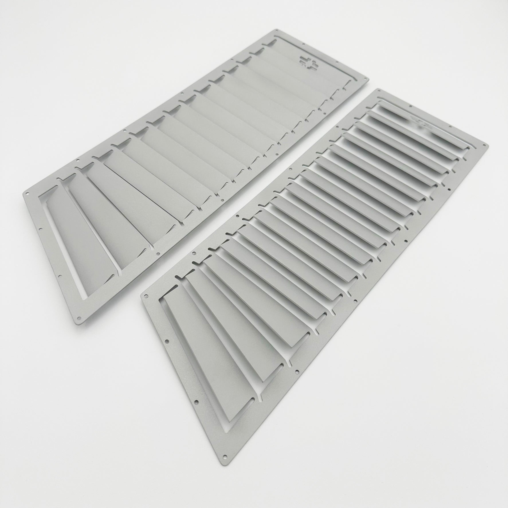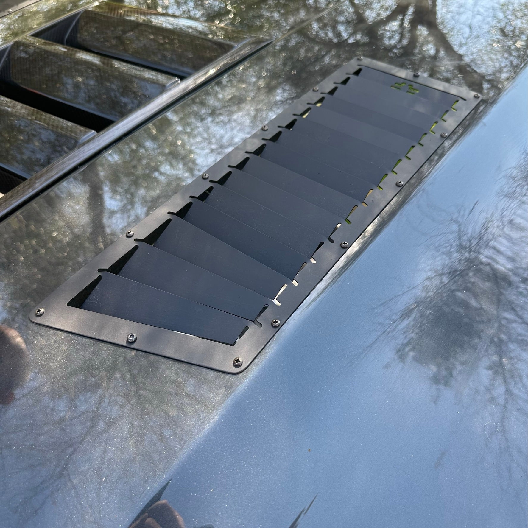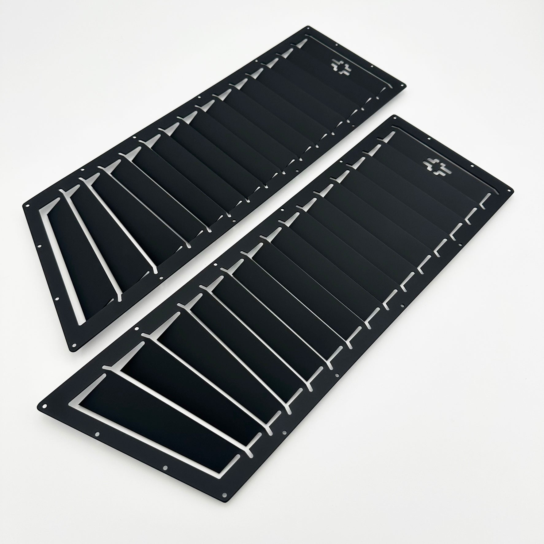 - Cerakote Matte Black - Crafted from a 050 aluminum and will have the louvers bent. Vents will be coated front and back in a Cerakote Matte Black UV resistant coating.