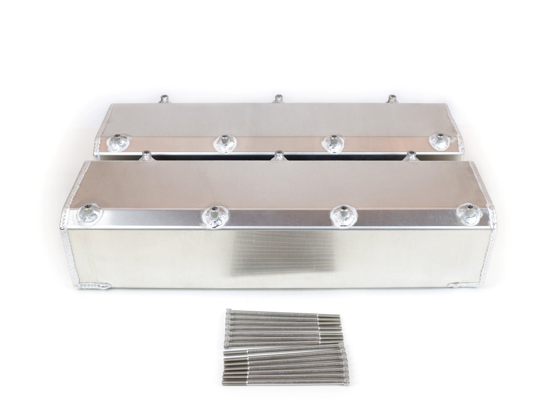 This is a lightweight yet rigid BBF valve cover. This fabricated valve cover is designed to be light weight, yet strong enough to prevent warpage. It is constructed from .100" aluminum, with heavy wall mounting tubes and is welded on cylinder heads to insure proper fit. Fill bungs, AN fittings, or breather stacks can be installed on a special order basis. Stainless socket head mounting bolts included.