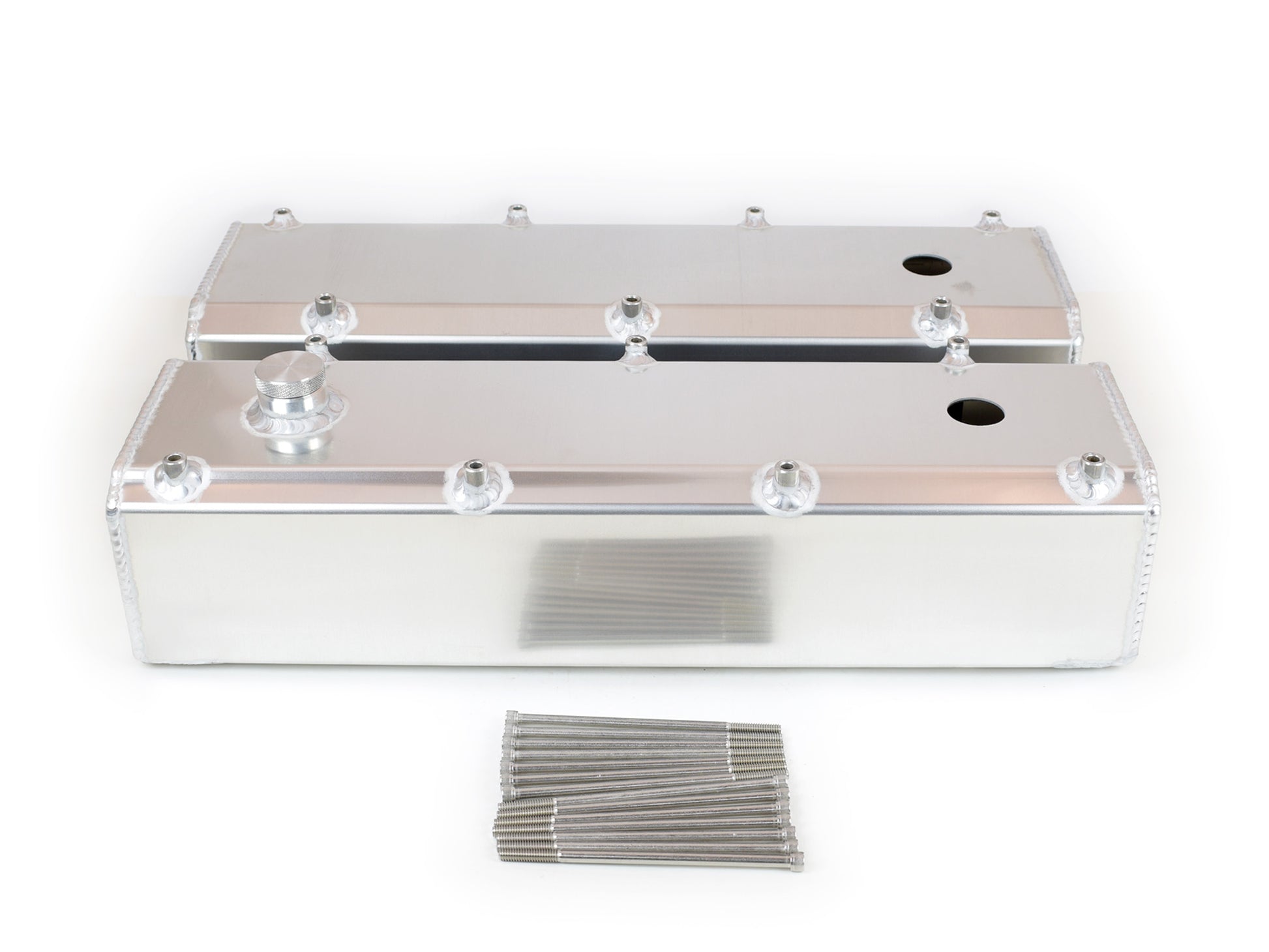- Feature 1: Fabricated aluminum valve covers for big block Ford engines come with plc port holes on each cover and a fill bung with billet cap on the front of one cover