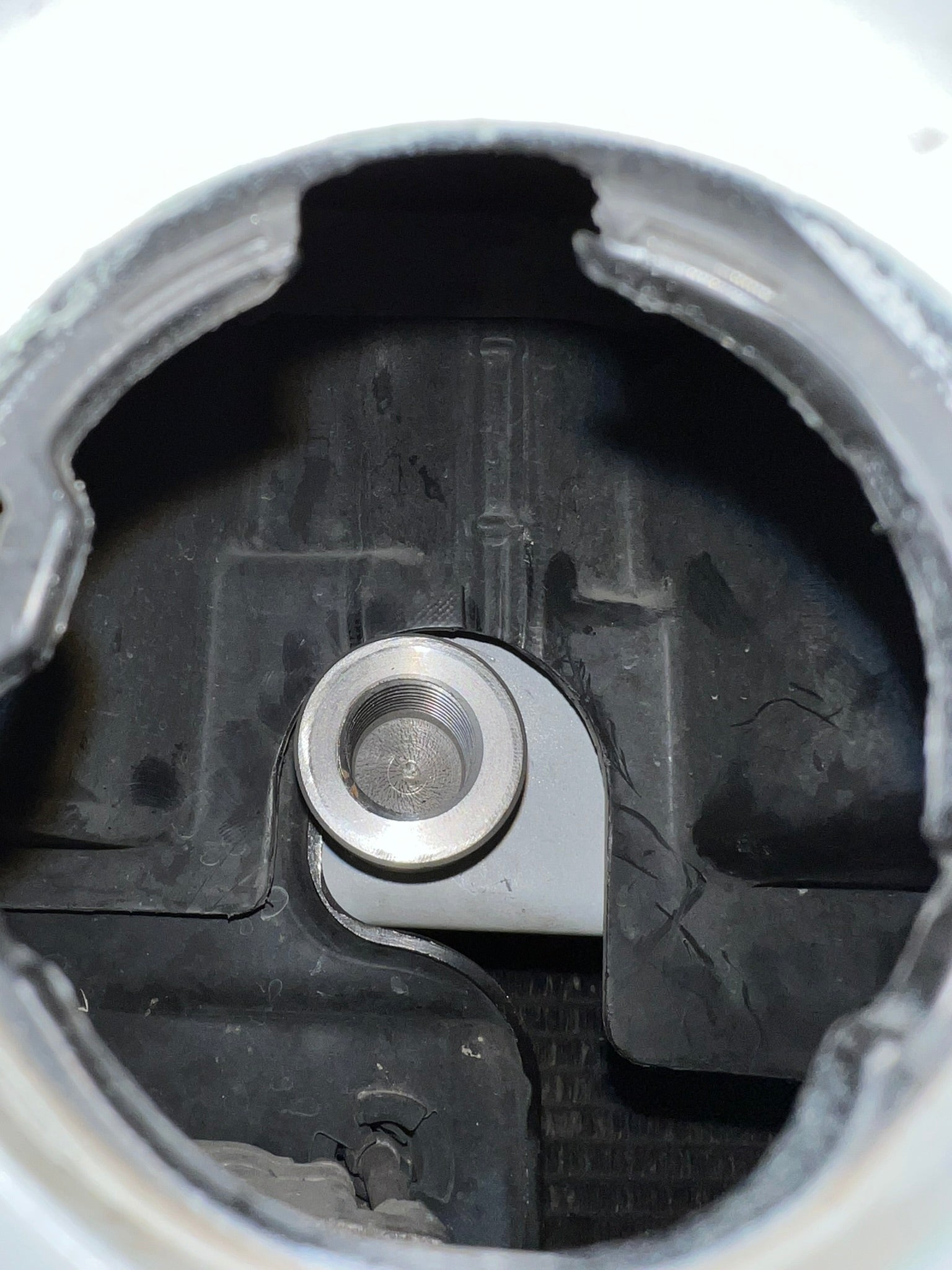 - Install the provided receiver into the factory hole placement on the crash bar, so that the threads extend through the crash bar out the bar side. This receiver is designed so it will lock in place and not spin while the nylock is installed in the next step.