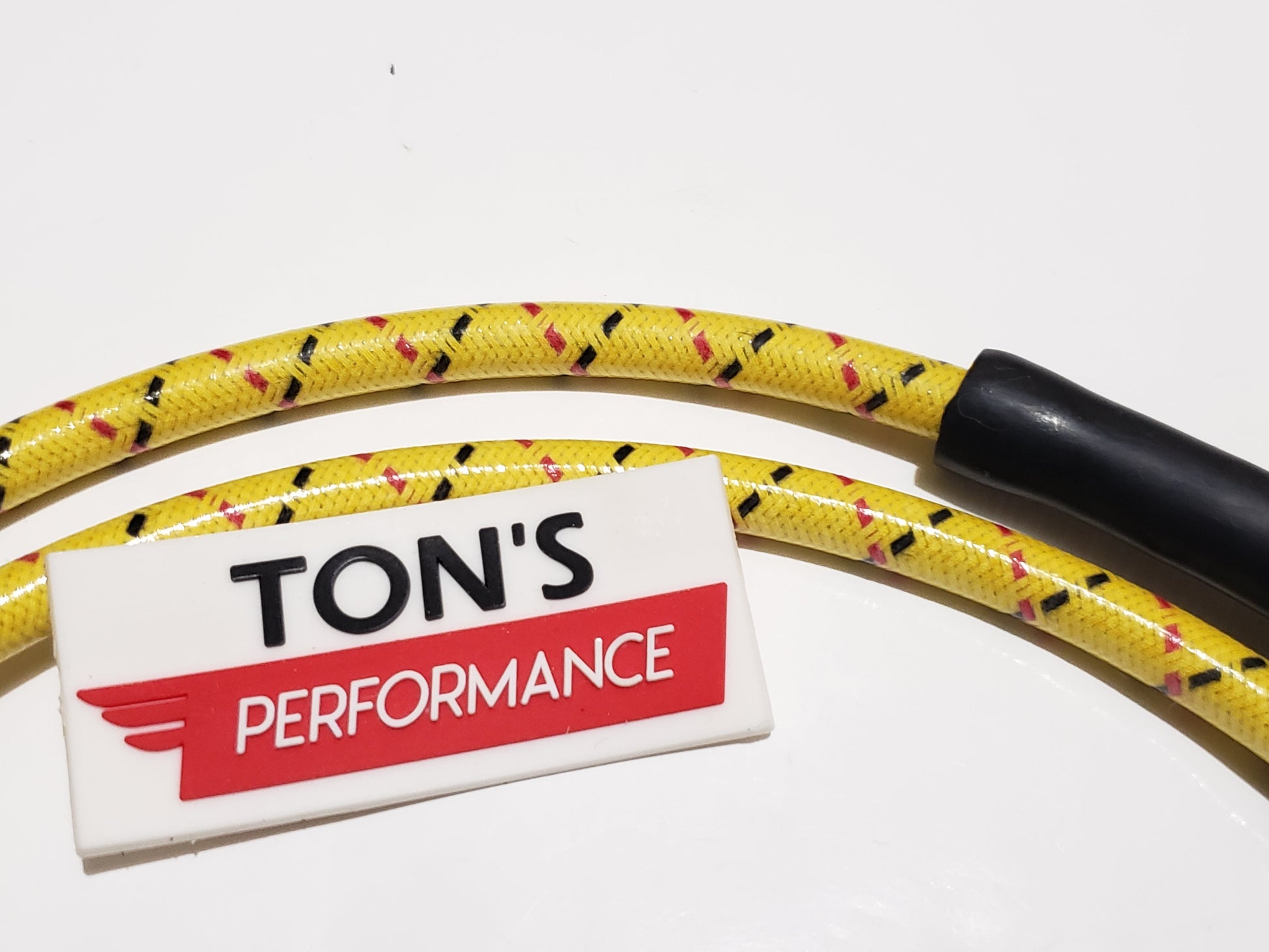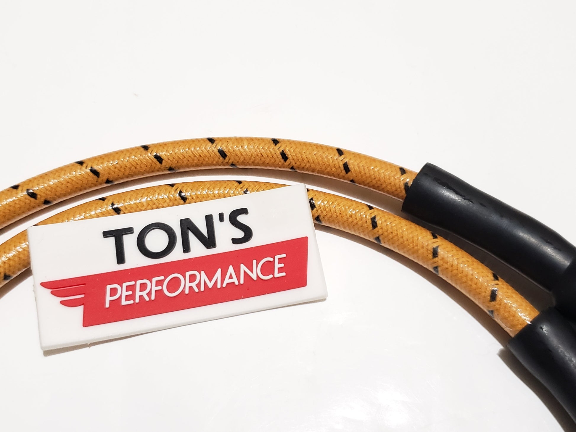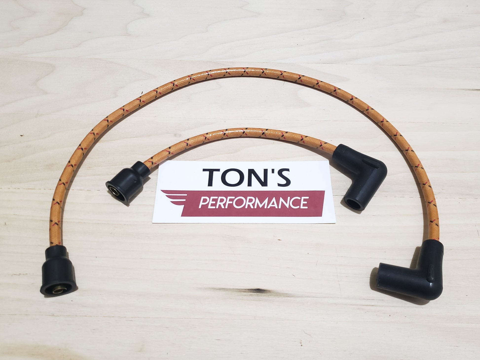 Consists of two OEM length wires for older Harley Davidson Softail models from year 1991 to 1998. Great for replacement coil wire, custom vintage look, bobbers, scramblers, cafe racer etc with OEM coil location on engine. These wires are 100% made in the USA, and are most unique upgrade for your ride. Available in 10+ cloth braided colors! These are very high quality sets that are assembled and put together by Ton's Performance. Different color options are available as pictured! Custom lengths, angle boots are available upon request. Message us for any details.