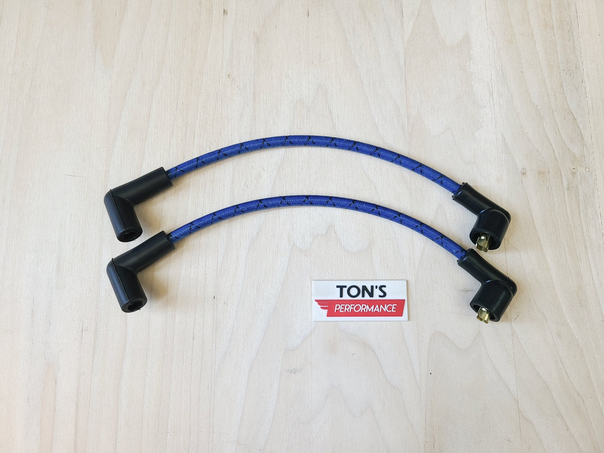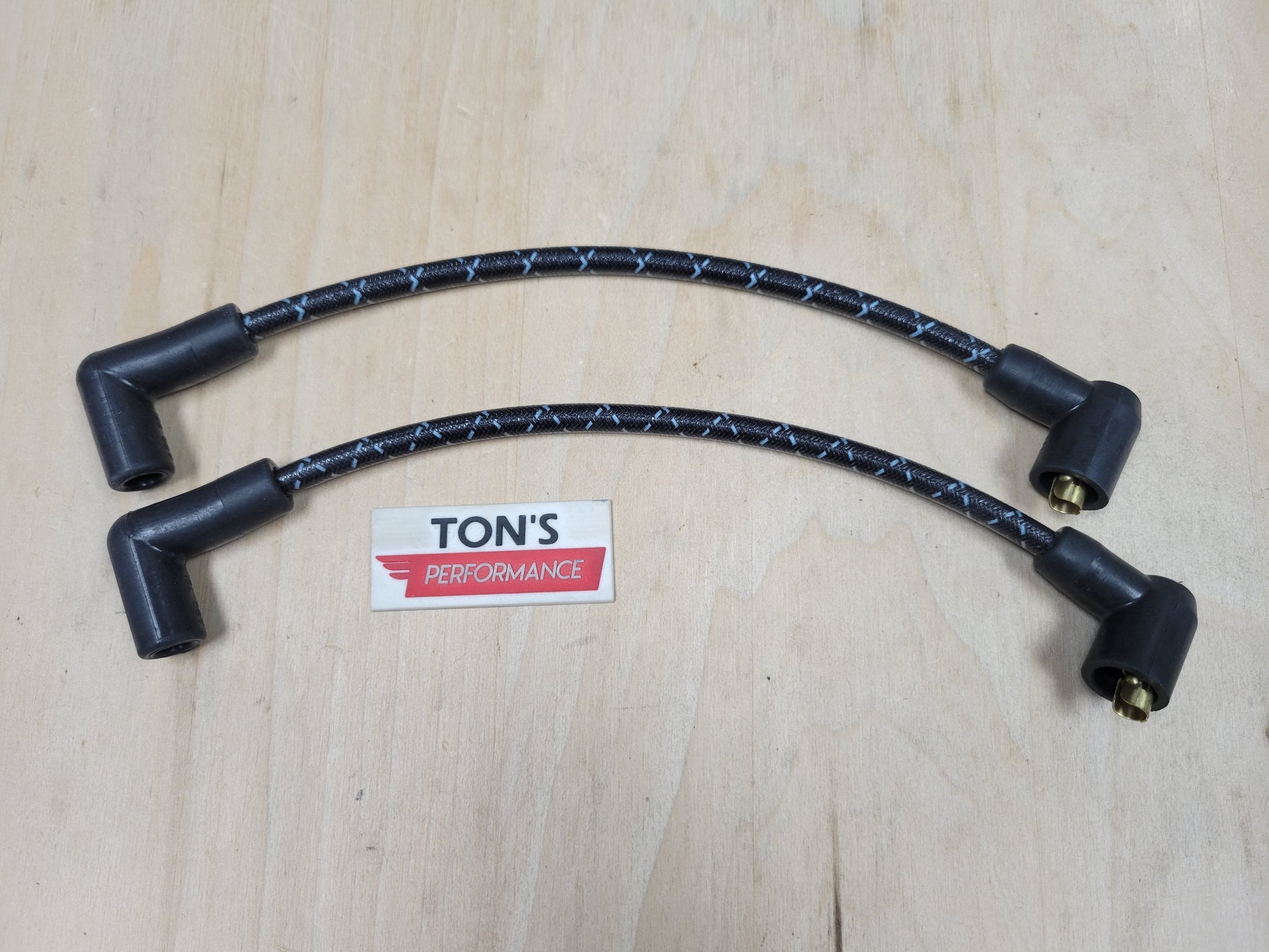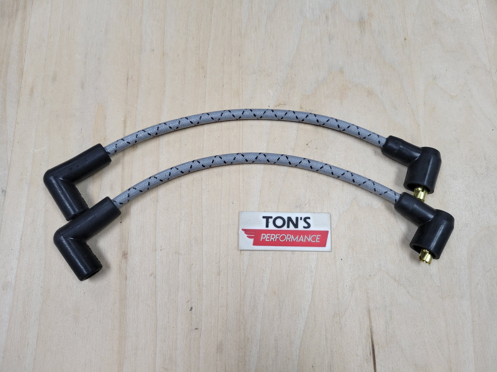 Consists of two OEM length wires for older Harley Davidson FXR models from year 1982 and up. Great for replacement coil wire, custom vintage look, bobbers, scramblers, cafe racer etc with OEM coil location on engine. These wires are 100% made in the USA, and are most unique upgrade for your ride. Available in 10+ cloth braided colors! These are very high quality sets that are assembled and put together by Ton's Performance. Different color options are available as pictured! Custom lengths, angle boots are available upon request. Message us for any details.