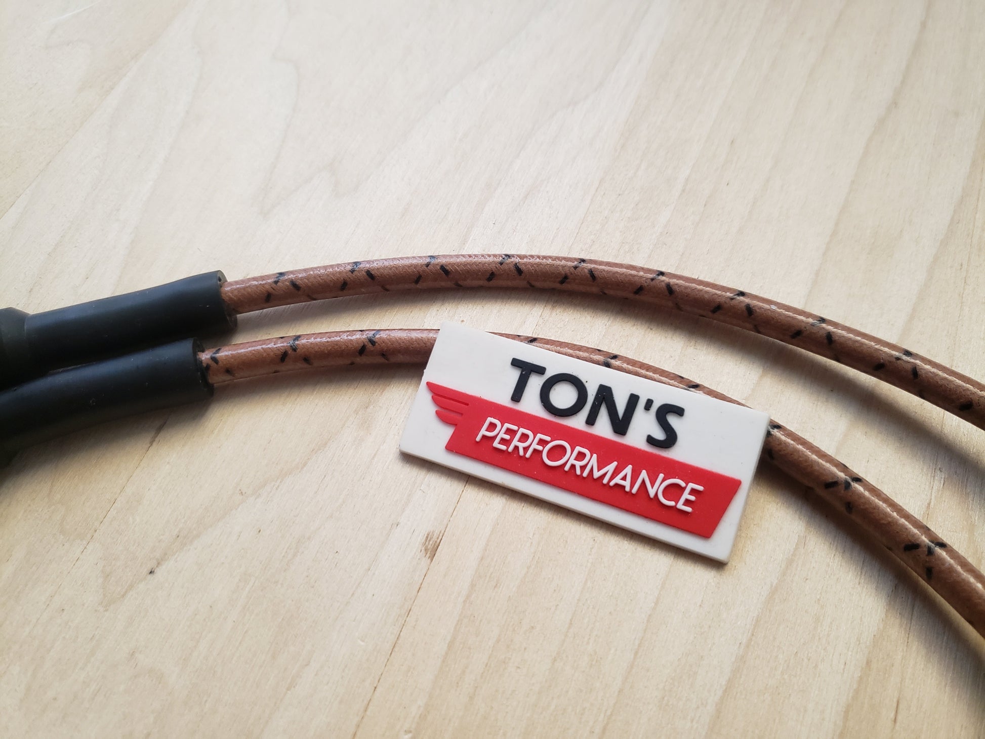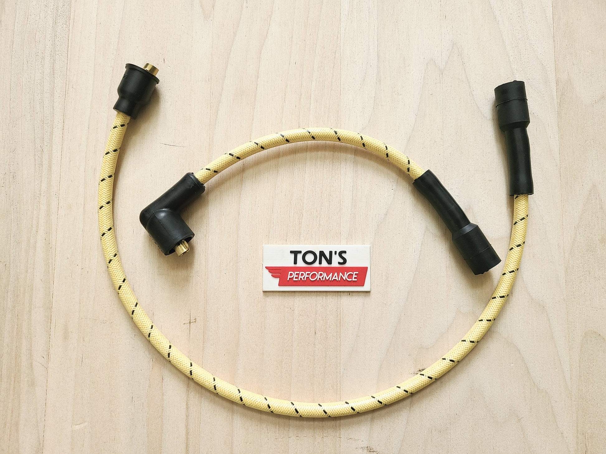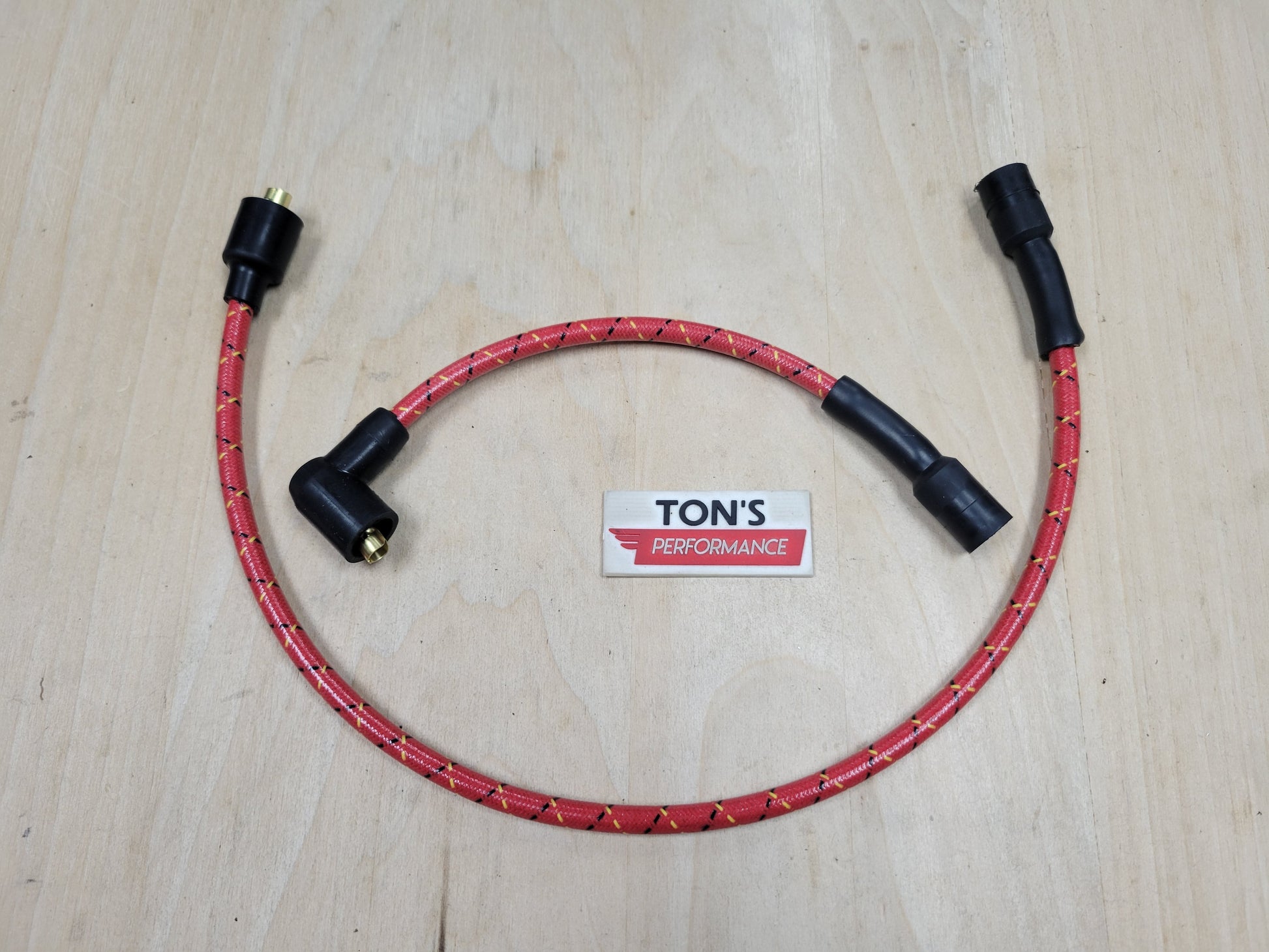 Consists of two OEM length wires for older Harley Davidson Sportsters models from year 1986 to 2003. Great for replacement coil wire, custom vintage look, bobbers, scramblers, cafe racer etc with OEM coil location on engine. These wires are 100% made in the USA, and are most unique upgrade for your ride. Available in 10+ cloth braided colors! These are very high quality sets that are assembled and put together by Ton's Performance. Different color options are available as pictured! Custom lengths, angle boots are available upon request. Message us for any details.