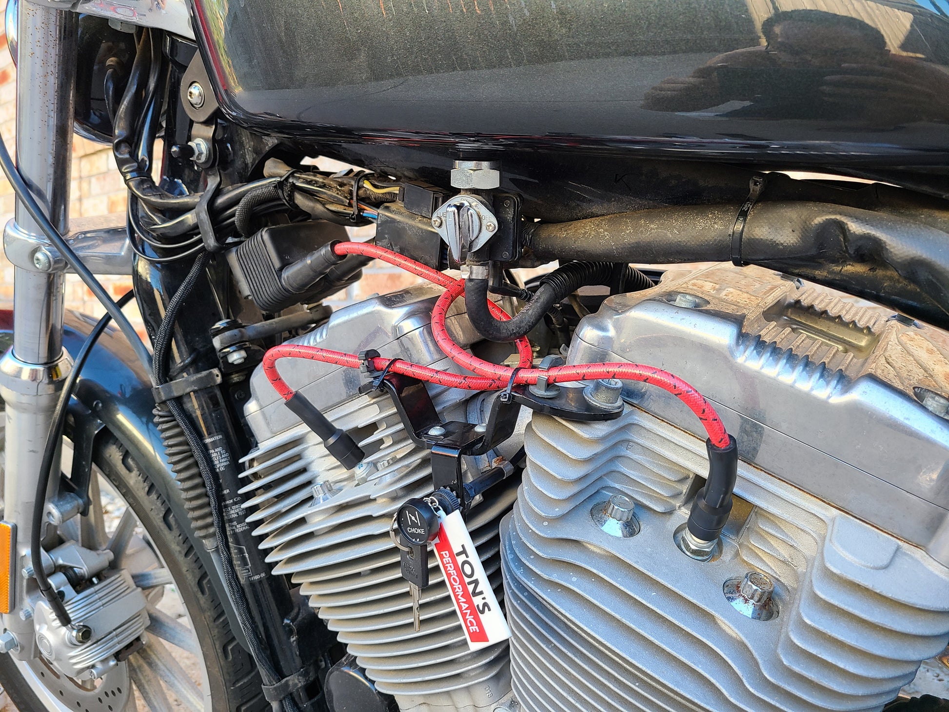 Consists of two OEM length wires for older Harley Davidson Sportsters models from year 2004 to 2006. Great for replacement coil wire, custom vintage look, bobbers, scramblers, cafe racer etc with OEM coil location on engine. These wires are 100% made in the USA, and are most unique upgrade for your ride. Available in 10+ cloth braided colors! These are very high quality sets that are assembled and put together by Ton's Performance. Different color options are available as pictured! Custom lengths, angle boots are available upon request. Message us for any details.