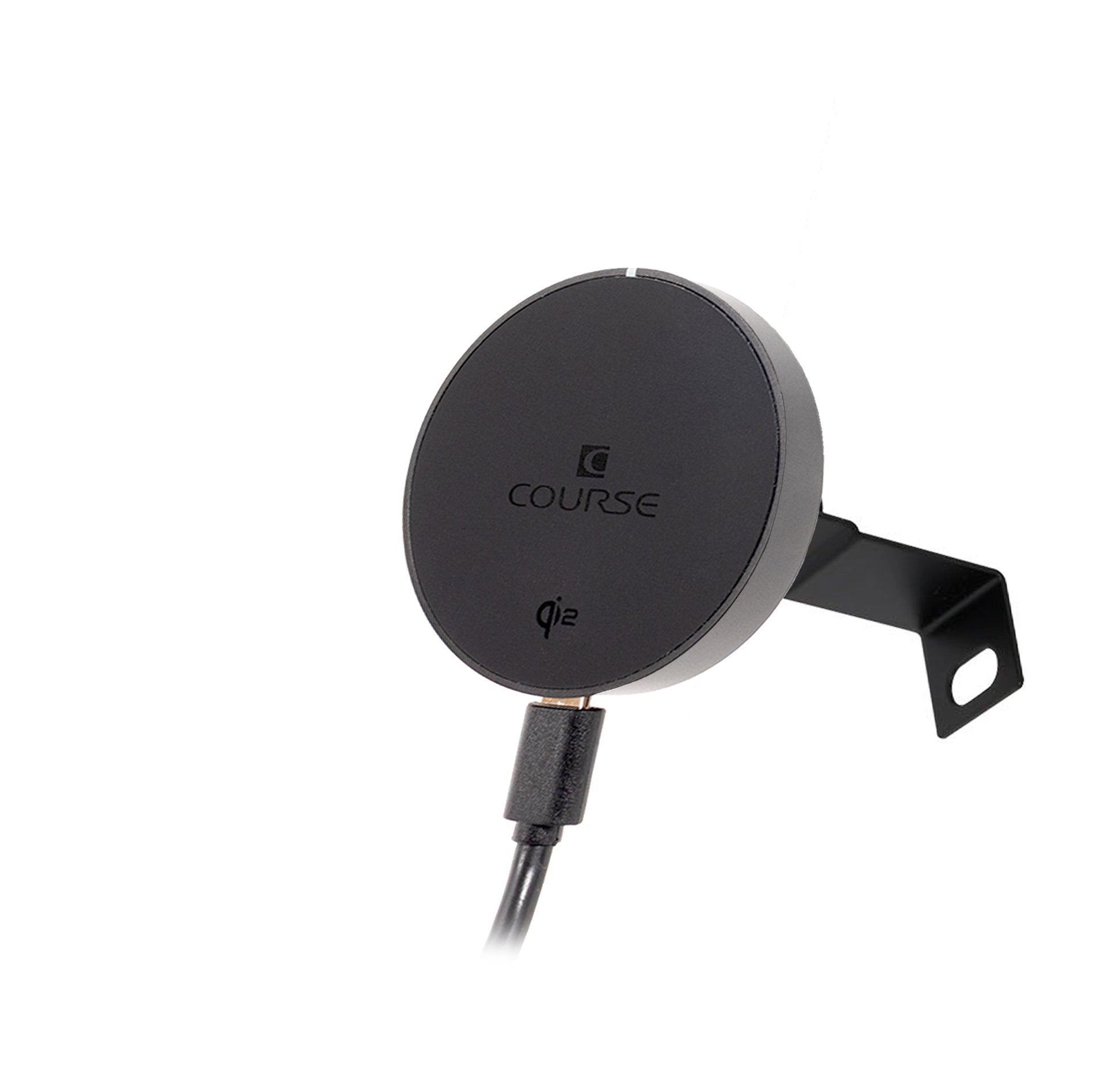 Available with a non-charging magnetic head option as shown in the photos and installation video, the optional Course Motorsports Automatic Gripping Wireless Induction Charger Mount or Course Motorsports Magnetic Induction Charger - MagSafe Compatible.