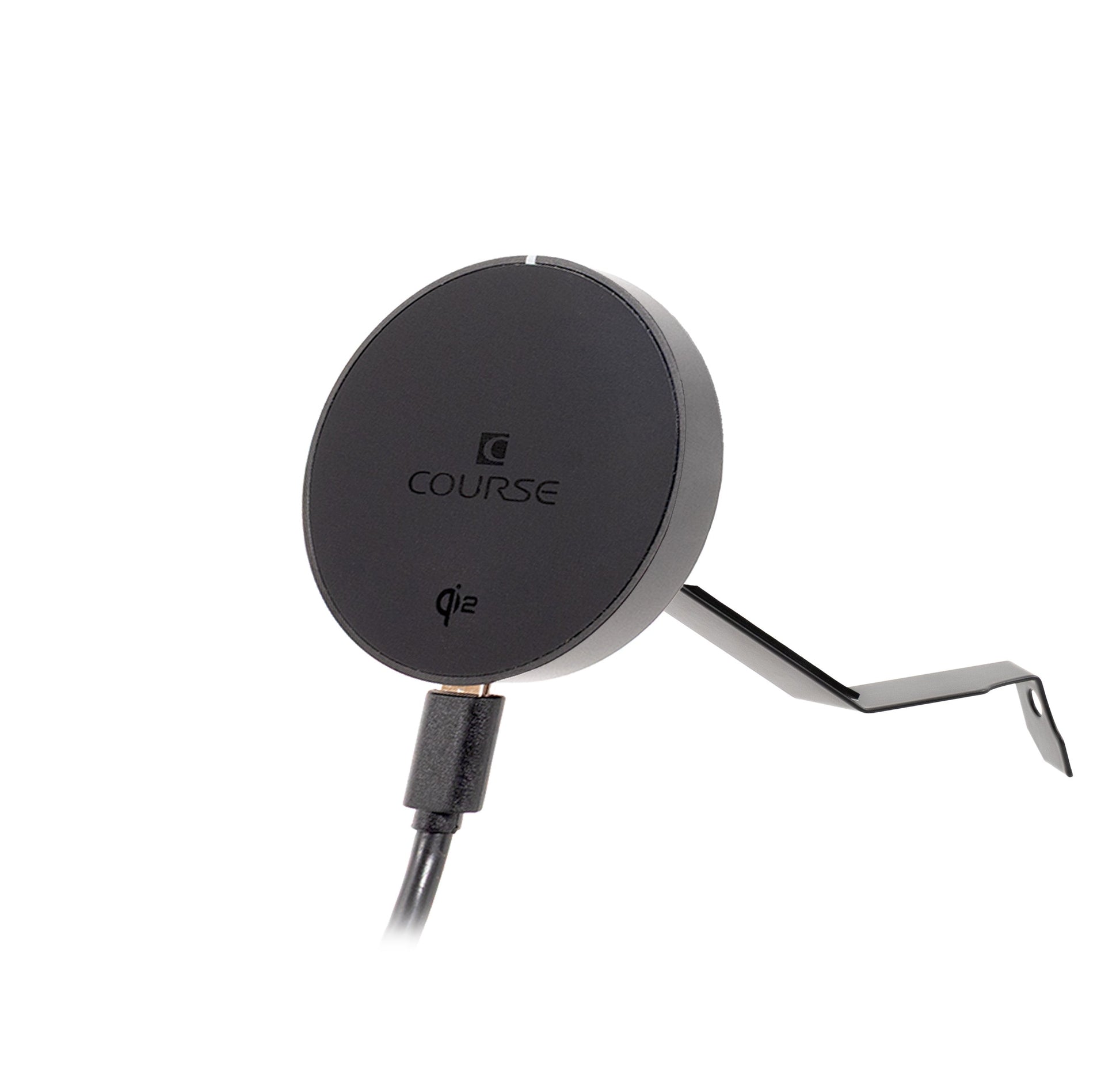 Available with a non-charging magnetic head option as shown in the photos and installation video, the optional Course Motorsports Automatic Gripping Wireless Induction Charger Mount or Course Motorsports Magnetic Induction Charger - MagSafe Compatible.