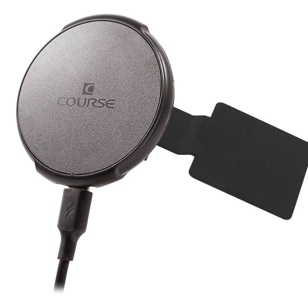 Available with a non-charging magnetic head option as shown in the photos and installation video, the optional Course Motorsports Automatic Gripping Wireless Induction Charger Mount or Course Motorsports Magnetic Induction Charger - MagSafe Compatible.