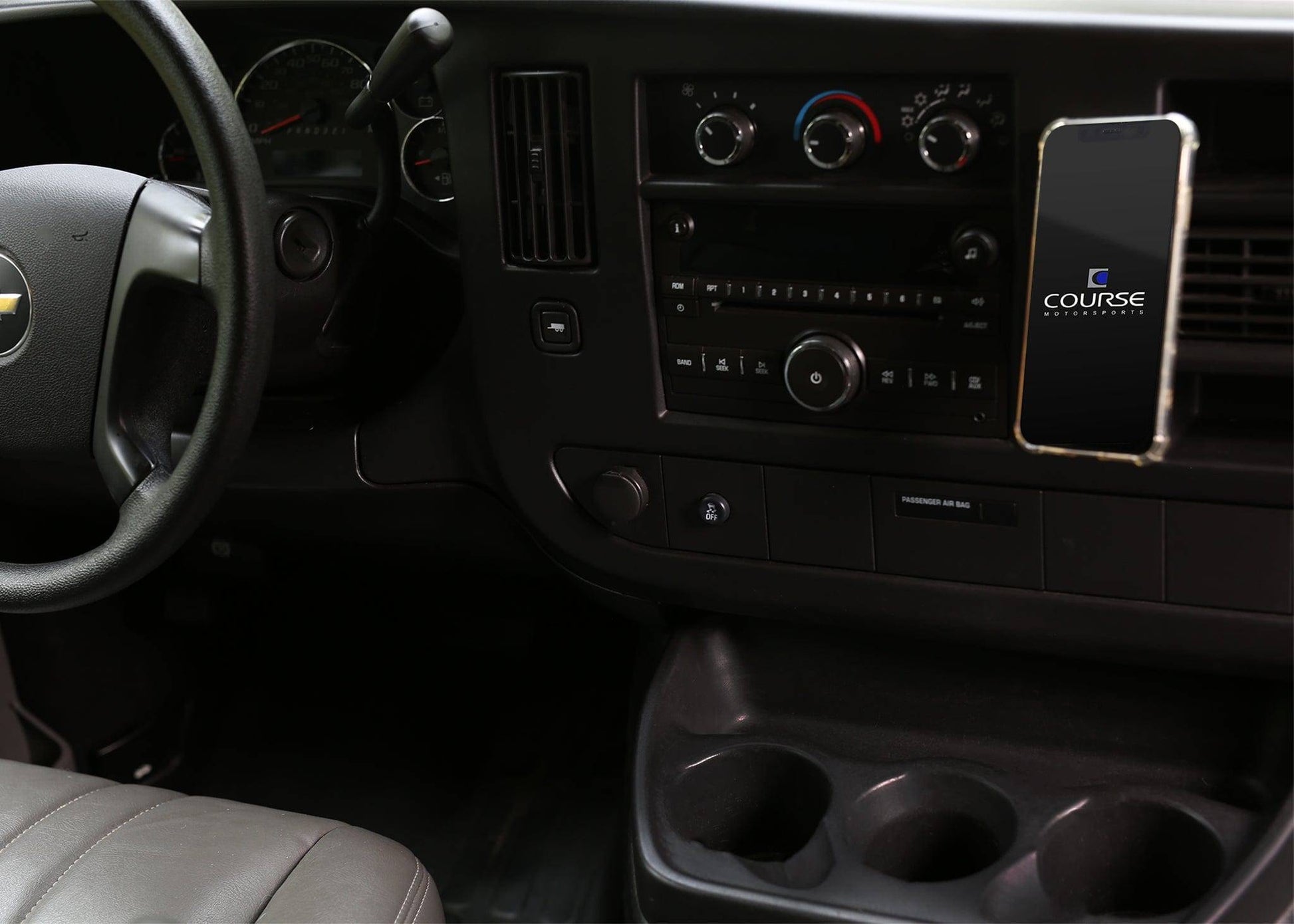 Compatible with Chevrolet Express (2003-Present) and GMC Savana (2003-Present), this phone mount is engineered to perfection for your vehicle. Unlike generic mounts, the Course Motorsports Direct Fit phone mounts are vehicle-specific, attaching securely around a swivel on the side of the HVAC vent, allowing for optimal phone positioning.