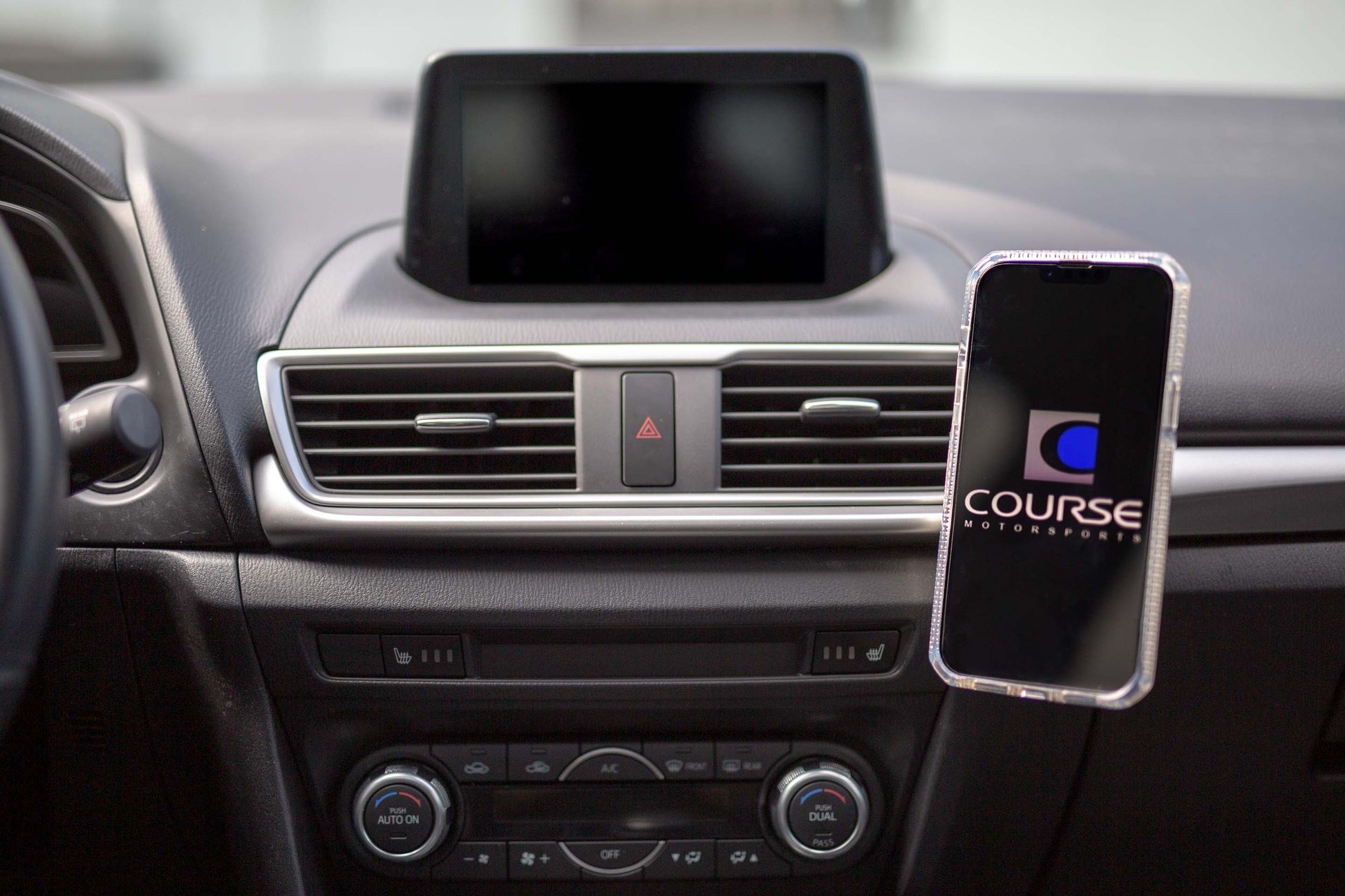 Finally a phone mount designed specifically to bolt onto your Mazda3. No need to worry about your phone falling off while zooming through the corners! Unlike the universal vent mounts, stick on mounts or suction cup mounts, Course Motorsports Direct Fit phone mounts are vehicle specific and are designed to securely mount your phone in the most ideal location while keeping a clean factory look. Why compromise on a product that you will use every day.