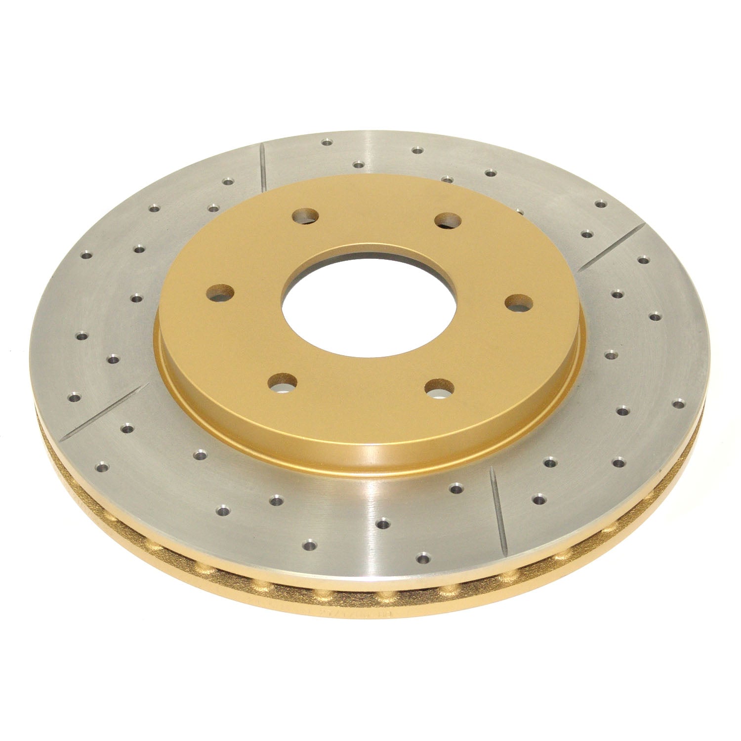 The introduction of our unique cross drilled and slotted design increases the number of exit points, allowing more brake pad friction dust and gases to escape through both the cross drilled holes and slots, resulting in better braking performance. While providing a similar performance benefit to the T2 slot, the X Gold is a popular alternative for open wheel and show cars. We recommend the T2 slot design for more intensive braking applications.