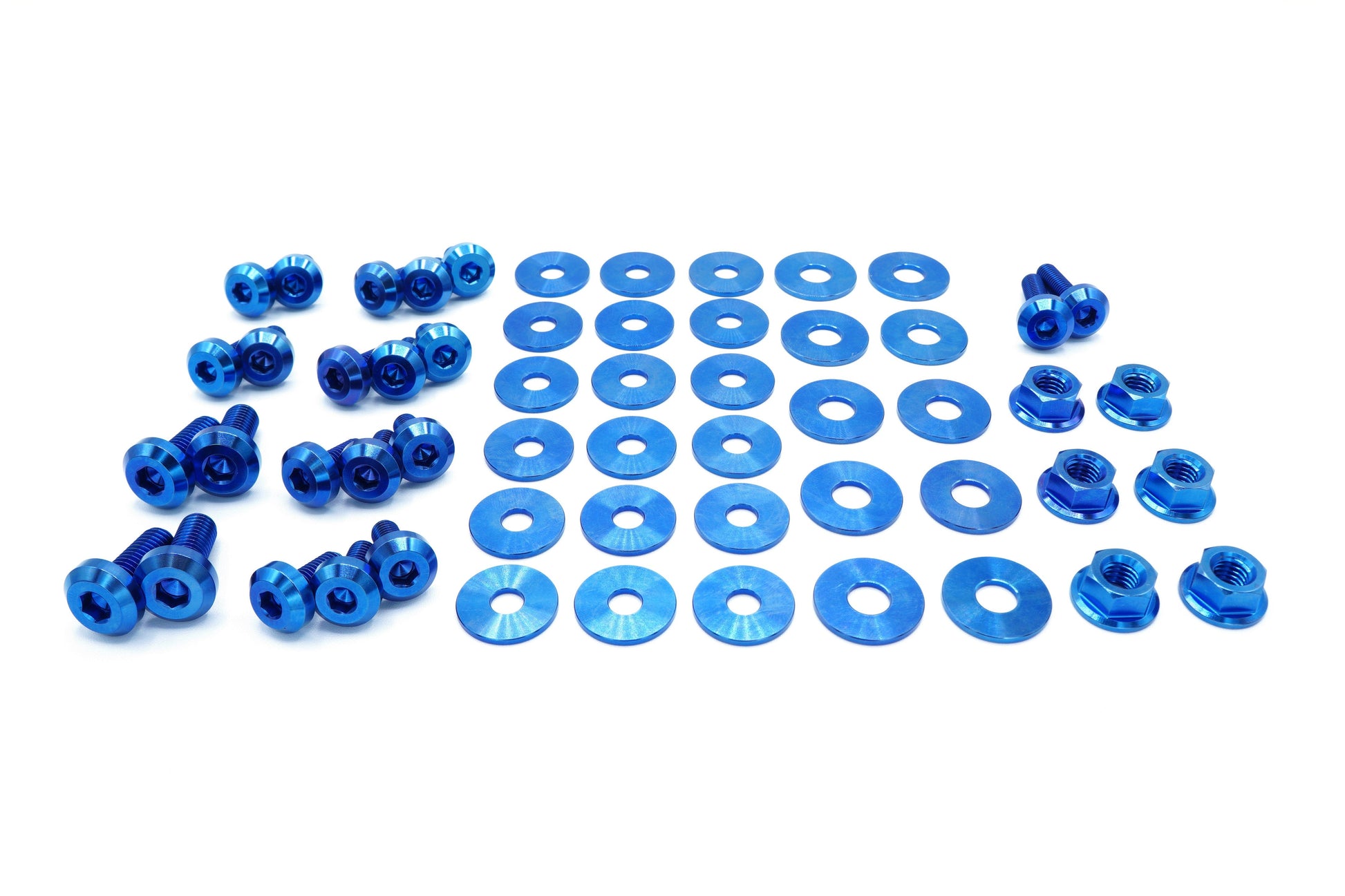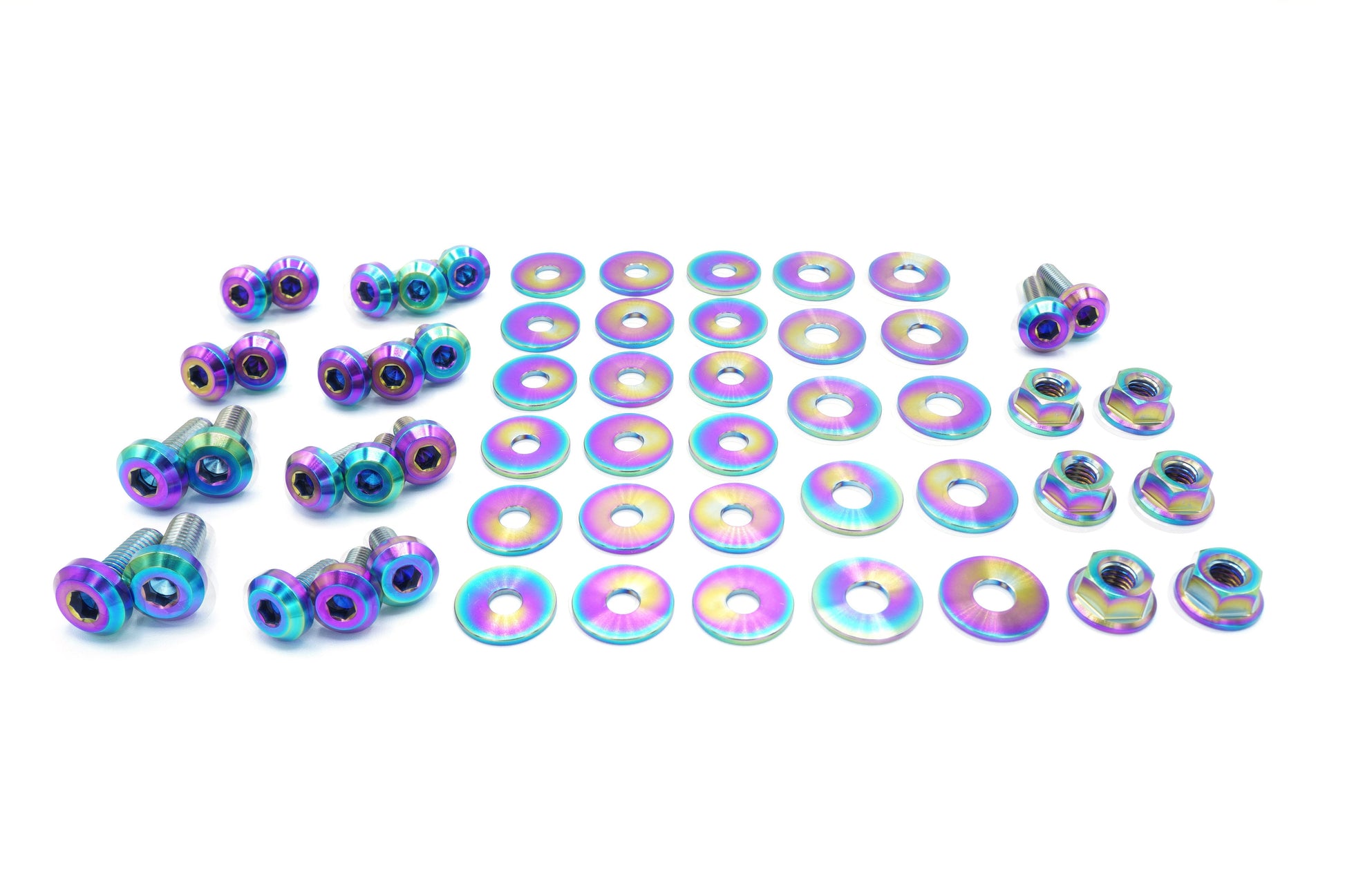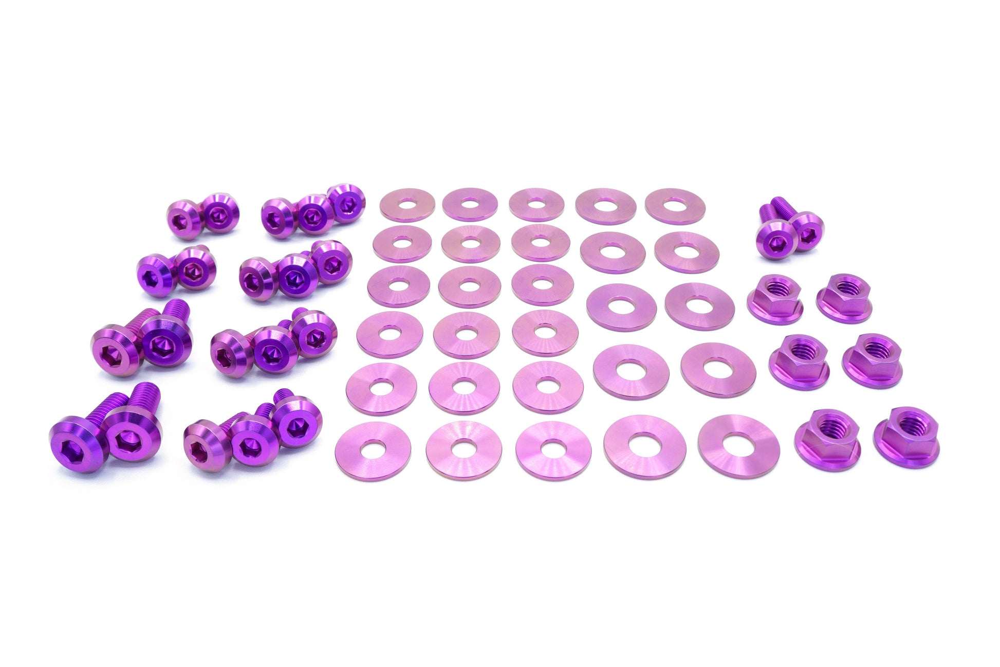 This 56 piece kit includes bolts, nuts, and washers manufactured from extremely durable, anticorrosive, and lightweight GR5 titanium metal.