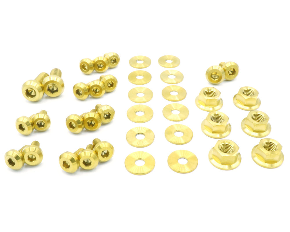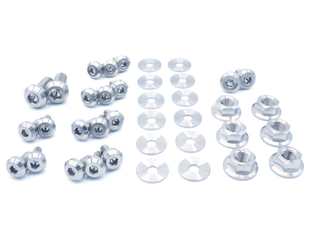 This 38 piece kit includes bolts, nuts, and washers manufactured from extremely durable, anticorrosive, and lightweight GR5 titanium metal. The entire kit only weighs 0.3lbs!