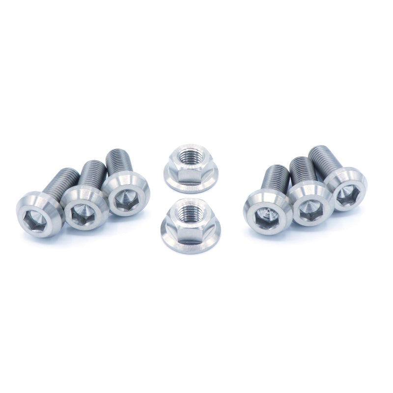 Our Strut Tower Bar Kit for the Nissan 350Z replaces OEM hardware used to attach the Strut Bar to the chassis. This 8 piece kit includes bolts and nuts manufactured from extremely durable, anticorrosive, and lightweight GR5 titanium metal.