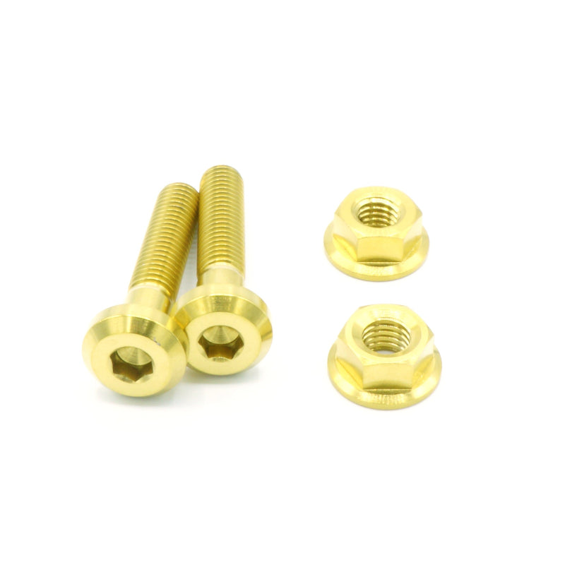 Dress Up Bolts Titanium hardware is made of Ti 6AI-4V (Grade 5) and incorporates a hex key design that allows our bolts to be easily installed using an Allen wrench.