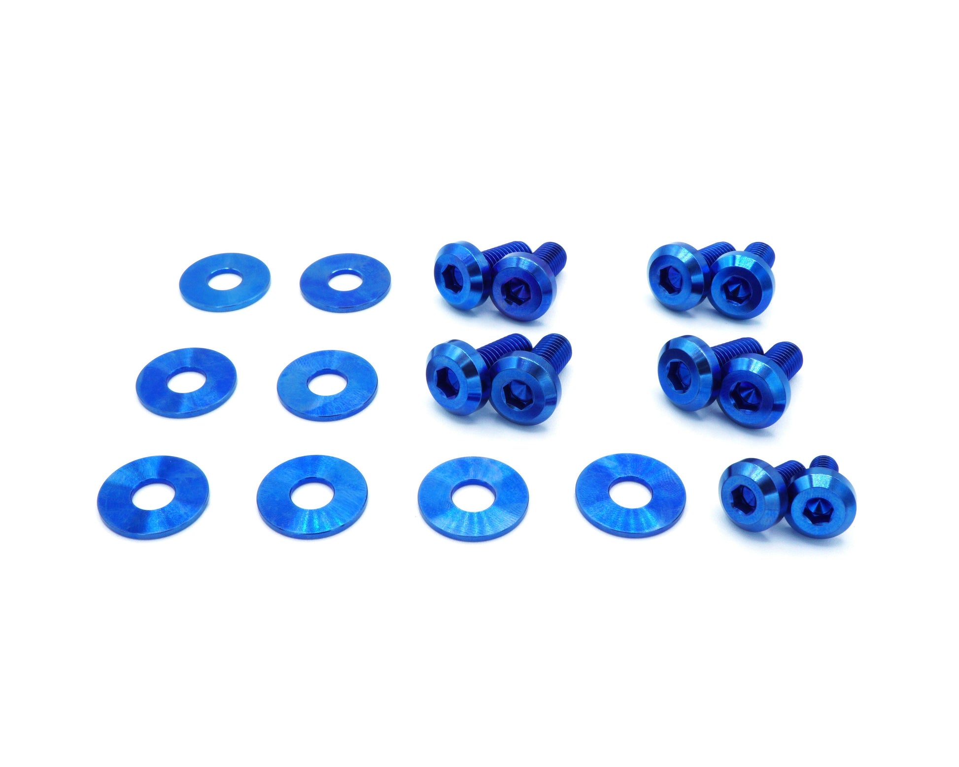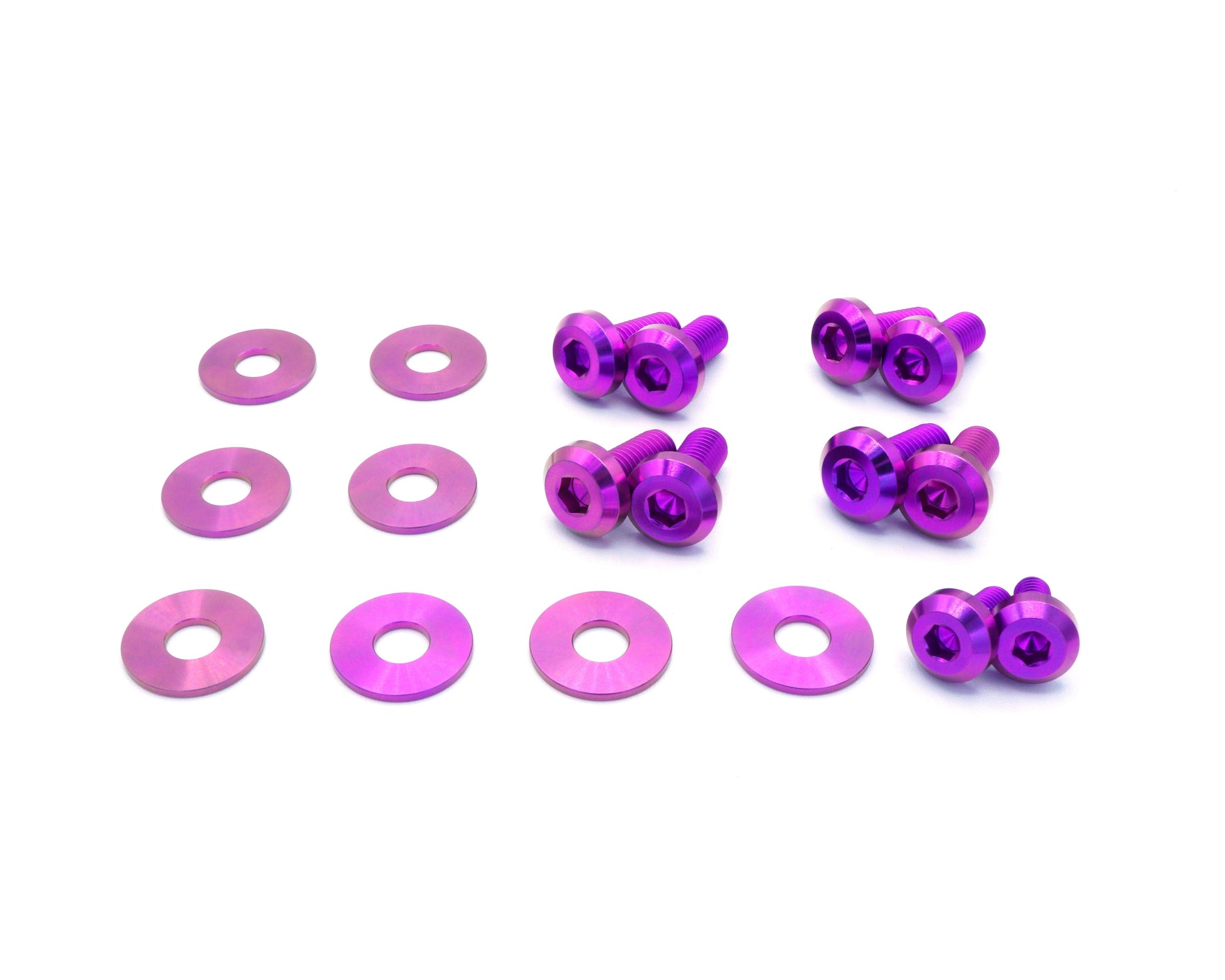 This 18 piece kit includes bolts and washers manufactured from extremely durable, anticorrosive, and lightweight GR5 titanium metal.