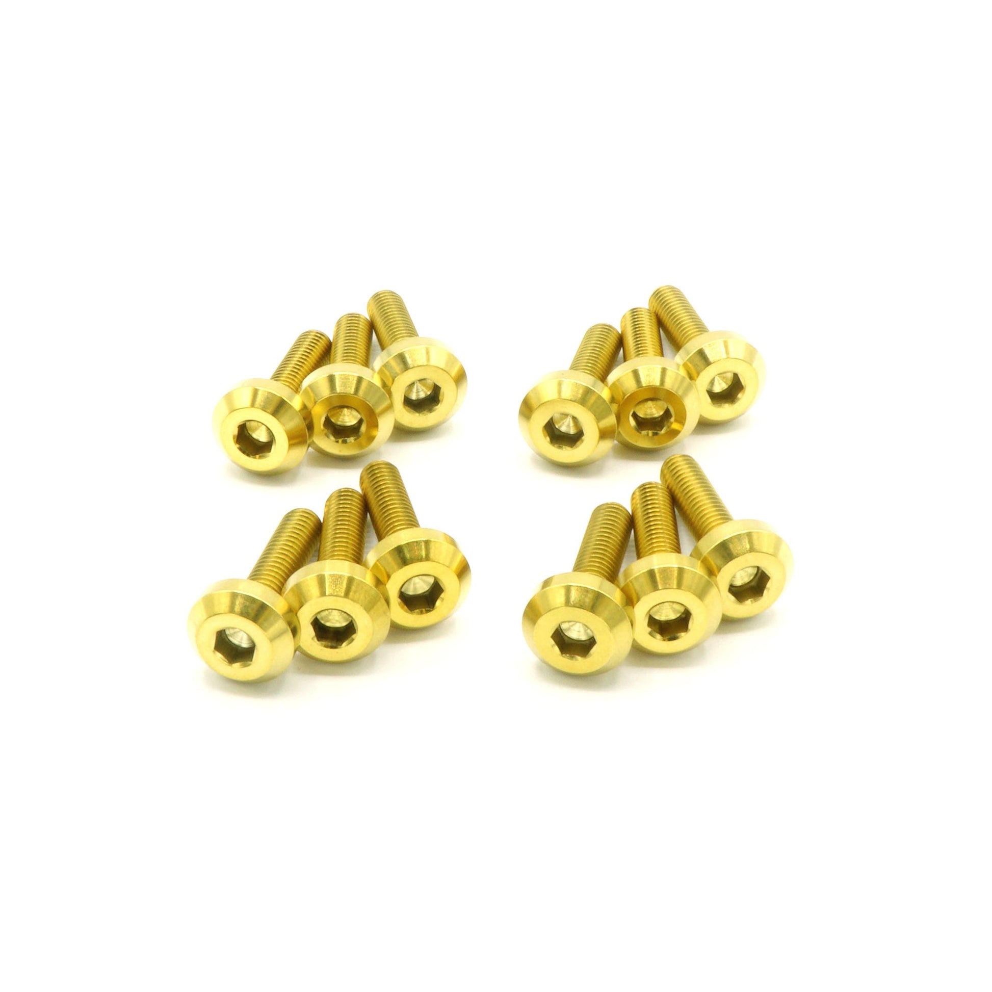 This 12 piece kit includes bolts manufactured from extremely durable, anticorrosive, and lightweight GR5 titanium metal.