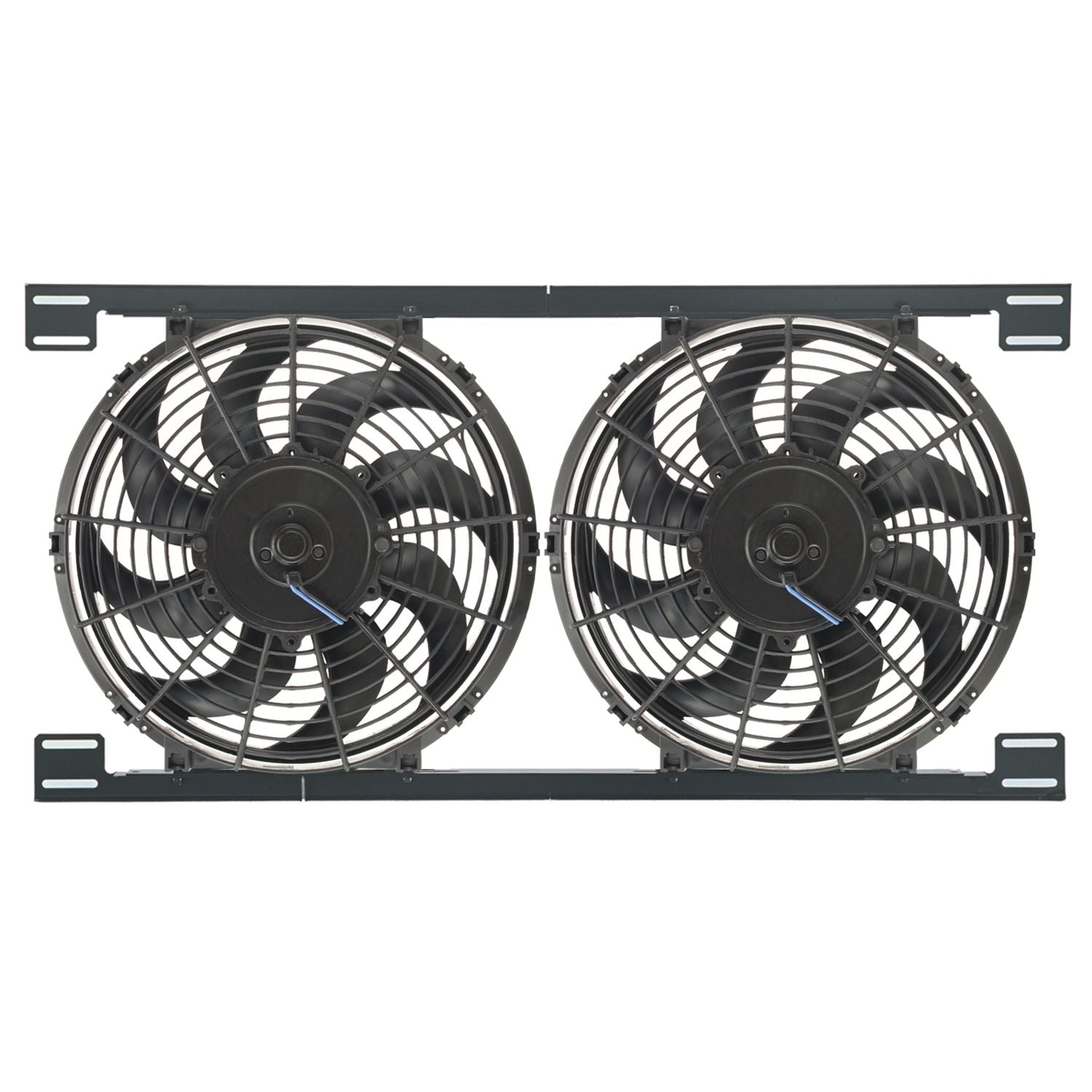 Featuring two of our powerful 12" Tornado electric fans and our universal Dual Tornado Fan brackets, this setup will fit a wide range of vehicle radiator combinations.