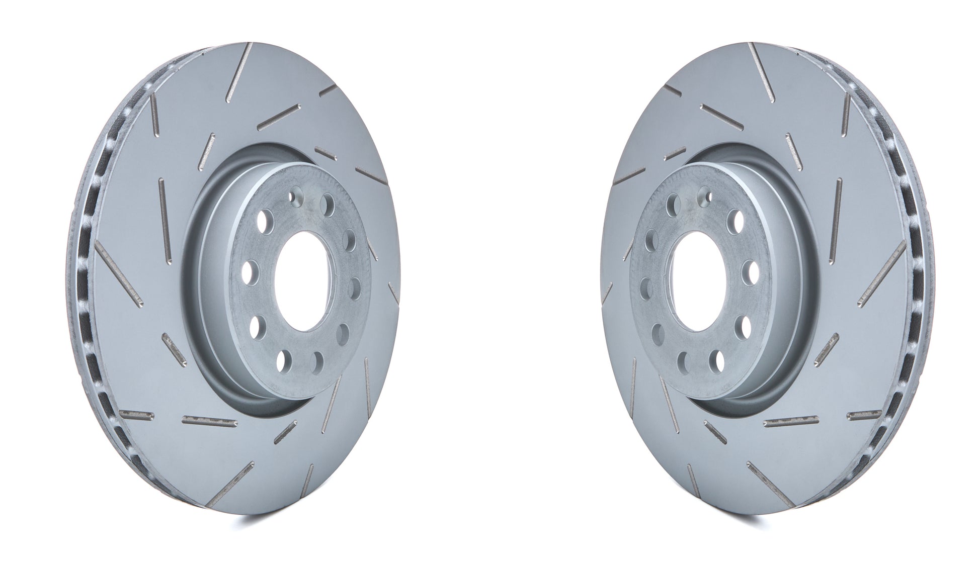 EBC BRAKES USA INC Brake Rotor - USR Series - Front - Directional / Dimpled / Slotted - 12.300 in OD - Iron - Gray Paint - Audi 2006-24 / Volkswagen 2005-24 - Pair.