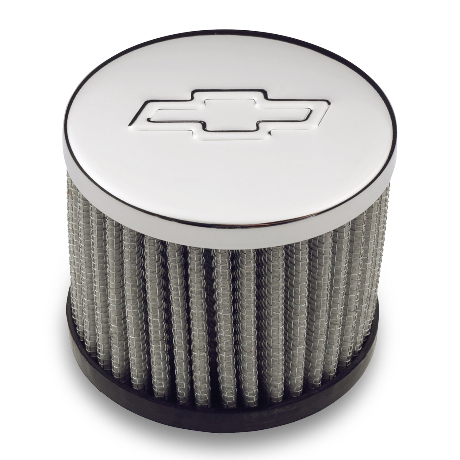 Proform Engine Valve Cover Breather; 3 In Dia; Chevy Logo; Push-In Style w/o Hood;Chrome 141-622