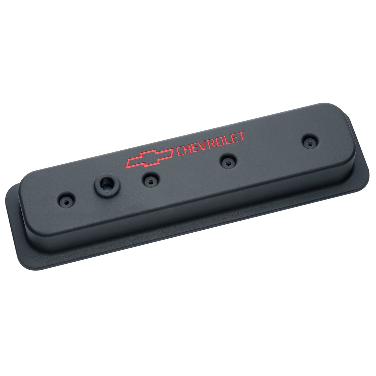 Proform Engine Valve Covers; Center Bolt Style; Die Cast; Black w/ Bowtie Logo; SB Chevy 141-131
