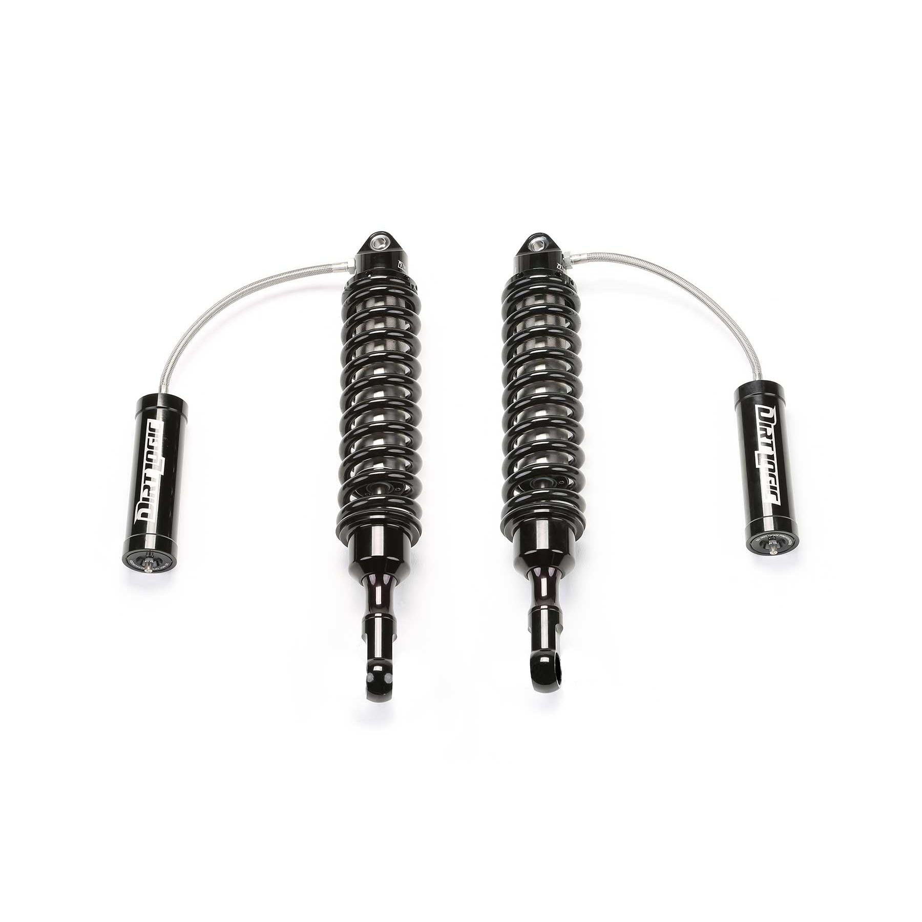 Dirt Logic 2.5 Resi Coilovers. From our desert racing experience the Dirt Logic 2.5 has been developed for exceptional performance in a variety of Coilover applications. The Dirt Logic 2.5 will provide incredible dampening capacity for aggressive offroad driving. Features: 2.5in OD Stainless Steel Body. 2.25in OD Billet Aluminum Piston. 7/8in NitroSteel Black Piston Rod. Cold Wound Coil Springs. Adjustable Coilover Construction. 5/8in Spherical Ball Mounting Ends. 2.50in OD Aluminum Reservoir w/-8 Stainless Steel O-ring Hose. Extended Length - E26.90. Collasped Length - C22.18. Stroke Length - S4.72 . Top Mount - TP. Bottom Mount - B1.