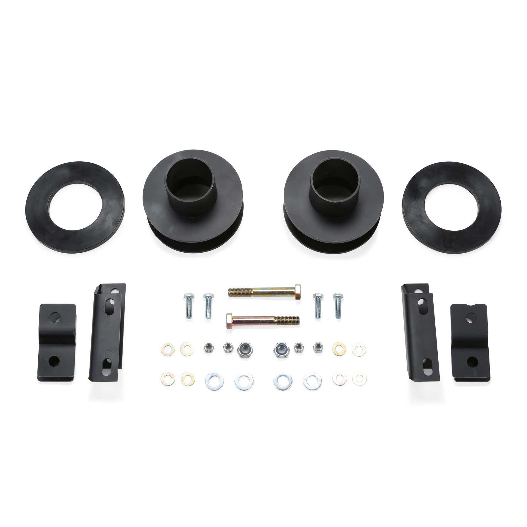 Fabtech Leveling Kits provide a small amount of lift for the front of the vehicle. This will typically help to level the stance of the vehicle's ride height front to rear as compared to the nose down appearance from the factory. With the added ride height it allows for the installation of larger tires and Wheels for a more aggressive look. The installation of the kit is typically very simple and can be done with basic hand tools. There is no modification of the vehicle required for installation and can be returned back to stock if needed. All Fabtech Leveling Kits have undergone extensive engineering to properly function without placing the ball joints and tie rods into bind. This is an important feature as some taller kits on the market create bind and can result in failure of those parts over time. Fabtech offers an exclusive Trade Up program on all their Leveling Kits. If you ever want to step up to a complete 4'' or 6'' Fabtech'suspension system after you buy a Leveling Kit, you can trade in the previously purchased kit towards the price of a new Fabtech'system. Please see program details. All Fabtech Leveling Kits come with a free 5 year 60,000 mile Powertrain warranty. Please see program details. This system includes steel spacers, coil isolators, sway bar brackets and front shock extensions.