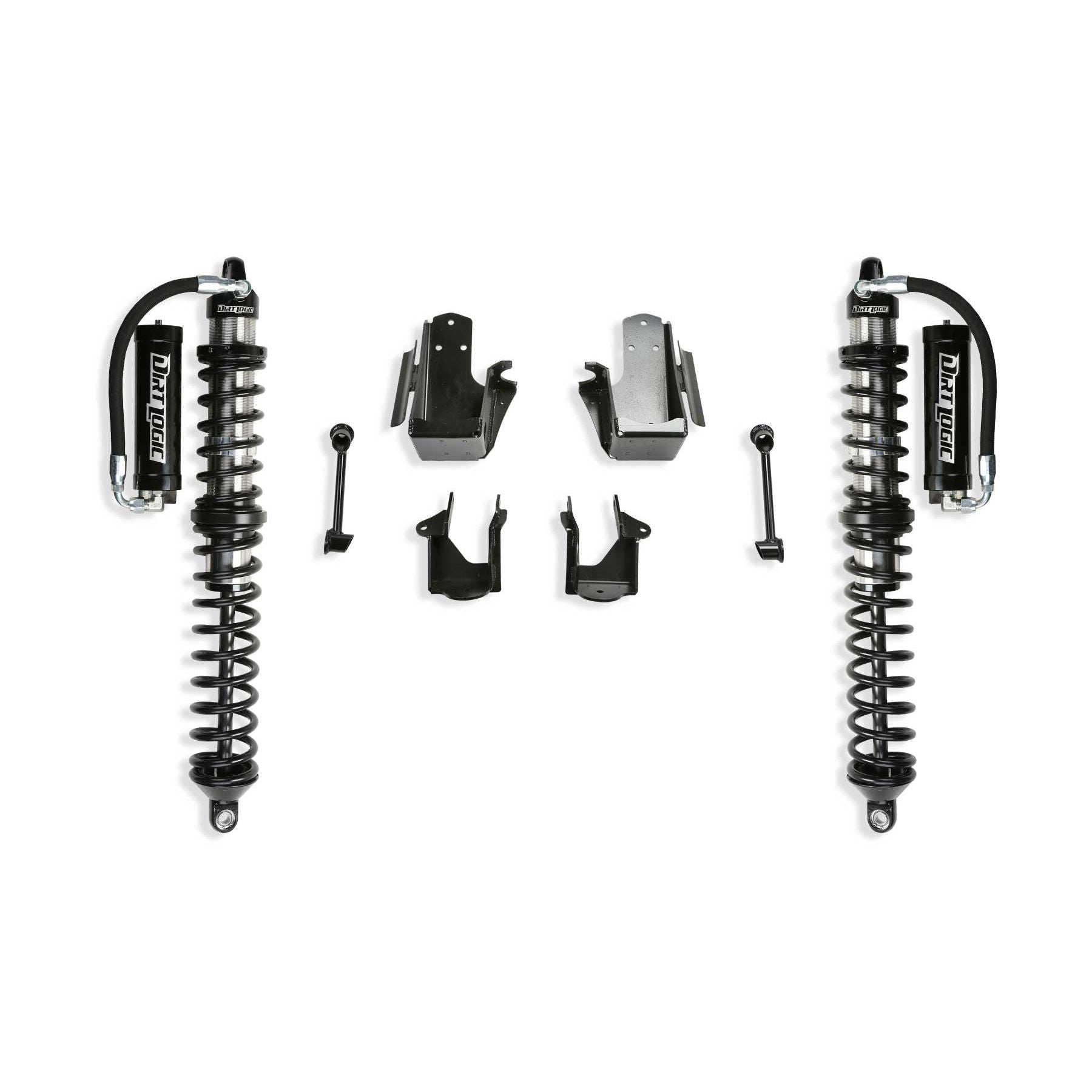 Fabtech's 3in Coilover Conversion for Jeep JL provides superior offroad suspension damping with a great highway ride compared to a separate coil spring and shock configuration. The stainless steel Dirt Logic 2.5 Coilover offers a noticeable increase in ride quality and high speed damping that Jeep owners will appreciate. This bolt on system retains the factory Jeep Wrangler coil spring bucket for an easy installation. Heavy duty axle brackets provide clearance for 9in wide Wheels with 4.5in back spacing and 13.50in wide tires. This Jeep JL Coilover Conversion will provide 12.50in of Wheel travel with valving that is specific to the Jeep for a balanced ride quality. The Dirt Logic 2.5 Coilover is constructed with a stainless steel body for maximum corrosion resistance and longevity in severe conditions. The billet aluminum reservoir provides heat dissipation to help reduce shock fade for a more consistent ride. All aluminum parts are polished and anodized for a stunning appearance. This Jeep JL Coilover Conversion has an optional Dirt Logic 2.25 Hydraulic Bump Stop kit for the ultimate in hard core compression damping.