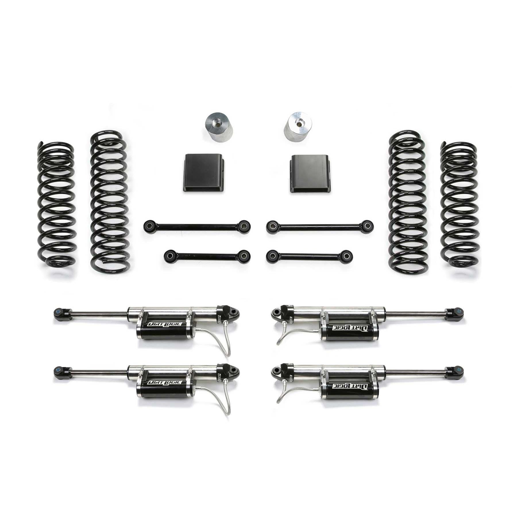 This Sport II lift kit is Fabtech's most popular Gladiator system providing increased ride height and suspension performance at a great price. Installation is easy and can be installed in a couple hours. The Sport II features American made front and rear coil springs that are a dual rate design allowing extended suspension travel for offroad use while providing a smooth highway ride. The first stage of the spring provides a soft ride with the ability to extend for additional travel. The second stage is designed to handle the payload of the Gladiator and address large impact absorption at higher speeds. Four bump stops extensions utilize the factory bump stops for compliant cushioning at full compression. The extensions retain the stock down travel to eliminate over cycling of the suspension and driveline. The extended length front and rear sway bar links with urethane bushings reposition the bars to work within the factory operating planes. By extending the length of the links, it prevents the sway bar from going over center and creating bind at full extension travel. The stainless steel Dirt Logic shocks will provide additional damping capacity for offroad use with a supple on road ride quality. This Gladiator lift kit is an excellent choice for the Jeep enthusiast that wants to run larger tires with enhanced offroad capability and a good highway ride. WHAT'S IN THE SYSTEM: Front & Rear Dual Rate Coil Springs. Front & Rear Sway Bar Links. Front & Rear Bump Stop Brackets. Free 5 Year 60,000 Mile Powertrain Warranty.