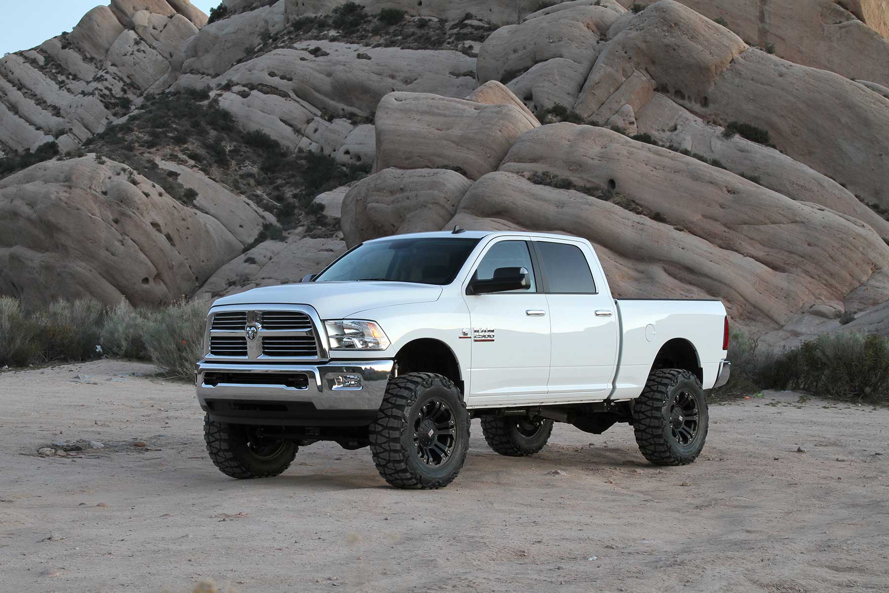 This high quality system has been designed to retain the factory load carrying capacity and ride of the vehicle with minimal parts. The stock coil springs are retained with angular steel spacers to retain the factory front spring bow. This is an important feature as Chrysler designed the bow to aid in their unique alignment specs and ride quality. Flat spacers do not provide this. The rear coil springs are also retained with steel spacers keeping the weight carrying capacity of the vehicle intact. A Fabtech exclusive on this system is the steel front bump extensions. They will not blow out like extra long urethane bump stops found in other aftermarket suspensions. No chance of spring and shock damage with the Fabtech'steel extensions. The factory Radius Arms are relocated with heavy duty 1/4'' thick steel brackets for proper caster with the 5'' lift. Super stout front and rear Track Bar drop brackets center the axles under the vehicle with the new ride height. The 5'' Basic System will clear 37'' tall tires and includes Fabtech Performance Twin Tube shocks. Estimated installation time - 4.5 Hours. 10 holes to drill for installation. No Welding Required.