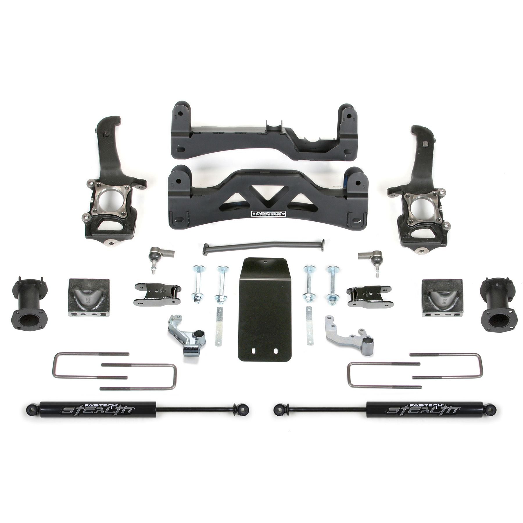 Our new 2009-13 F150 GEN II system utilizes the proven designs from our 2014 system at an affordable price and fast install for the earlier model trucks. This system includes heavy duty 1/4'' thick steel lower control arm crossmembers with an integrated front differential skid plate for protection and increased front suspension strength. Fabtech extended length ductile iron steering knuckles allow use of 18'', 20'' or 22'' Wheels. The Basic GEN II System includes front spacers utilizing the factory Coilover shock while the rear receives Fabtech'stealth shocks. Includes Fabtech's 5/60 Powertrain warranty. Five years or 60,000 mile warranty on the vehicle with a Fabtech'suspension. Estimated installation time - 4 Hours. 0 holes to drill for installation. No Welding Required.