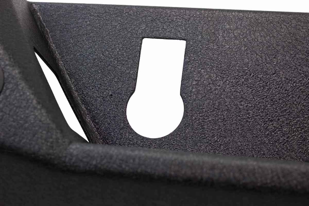 Crafted from robust 3/16" steel, this Jeep Gladiator Rear Bumper's durability is evident. To bolster its resistance against potential corrosion, it's coated in a black powder finish. This not only extends the bumper's life but also offers a sleek, unified look with the rest of the Jeep.
