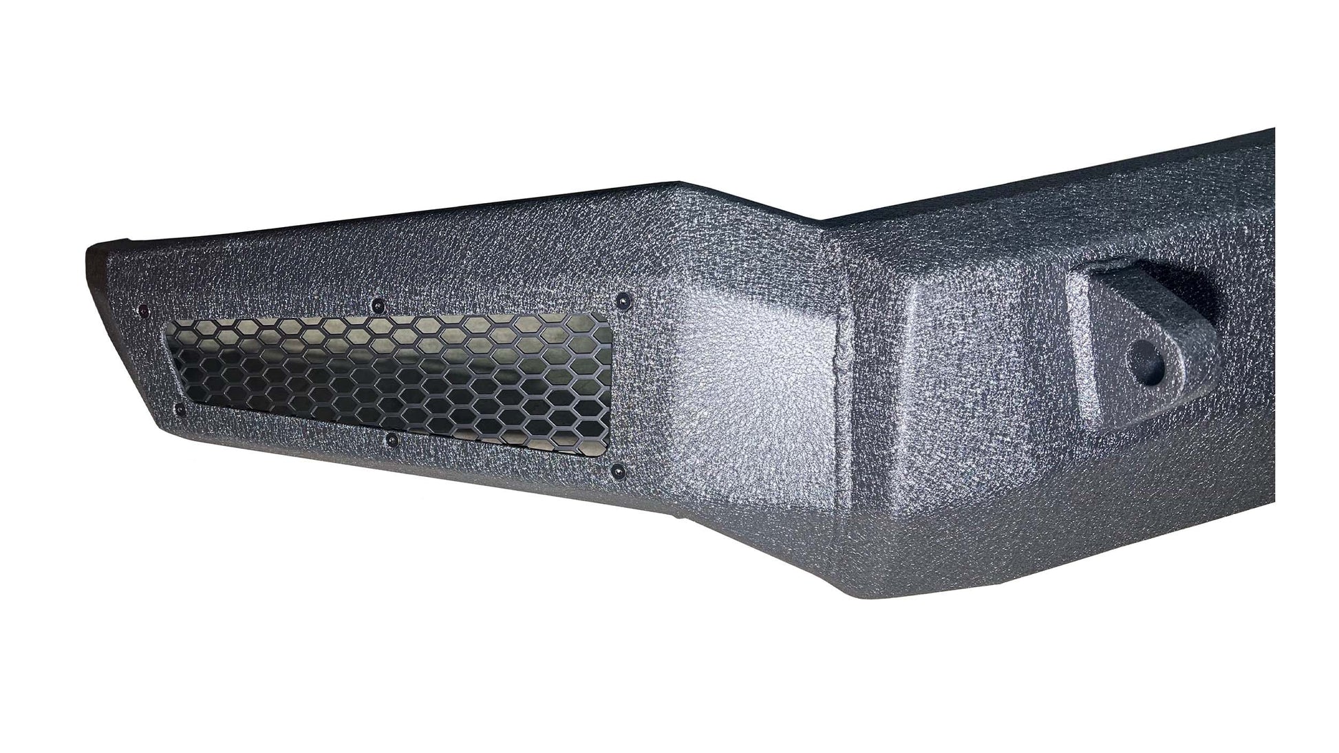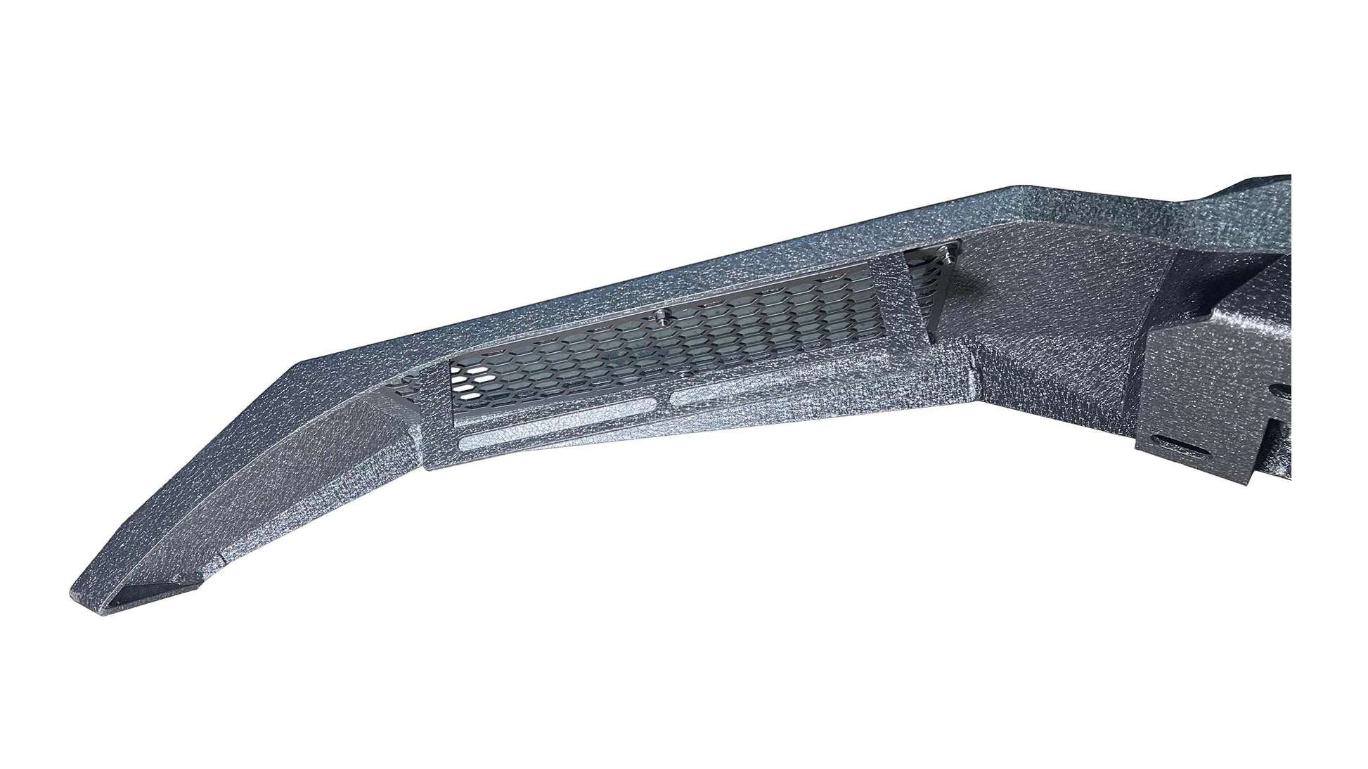 Picture this: as you drive, the LED light mounts on this bumper pierce through the dark, lighting up the trail ahead. The intricacies of its design allow you to fit up to 4 pod lights and most 22-inch light bars, giving you the flexibility to choose your preferred lighting. And if the path gets a little rough? You can feel secure knowing the skid plate is there to protect your intercooler.