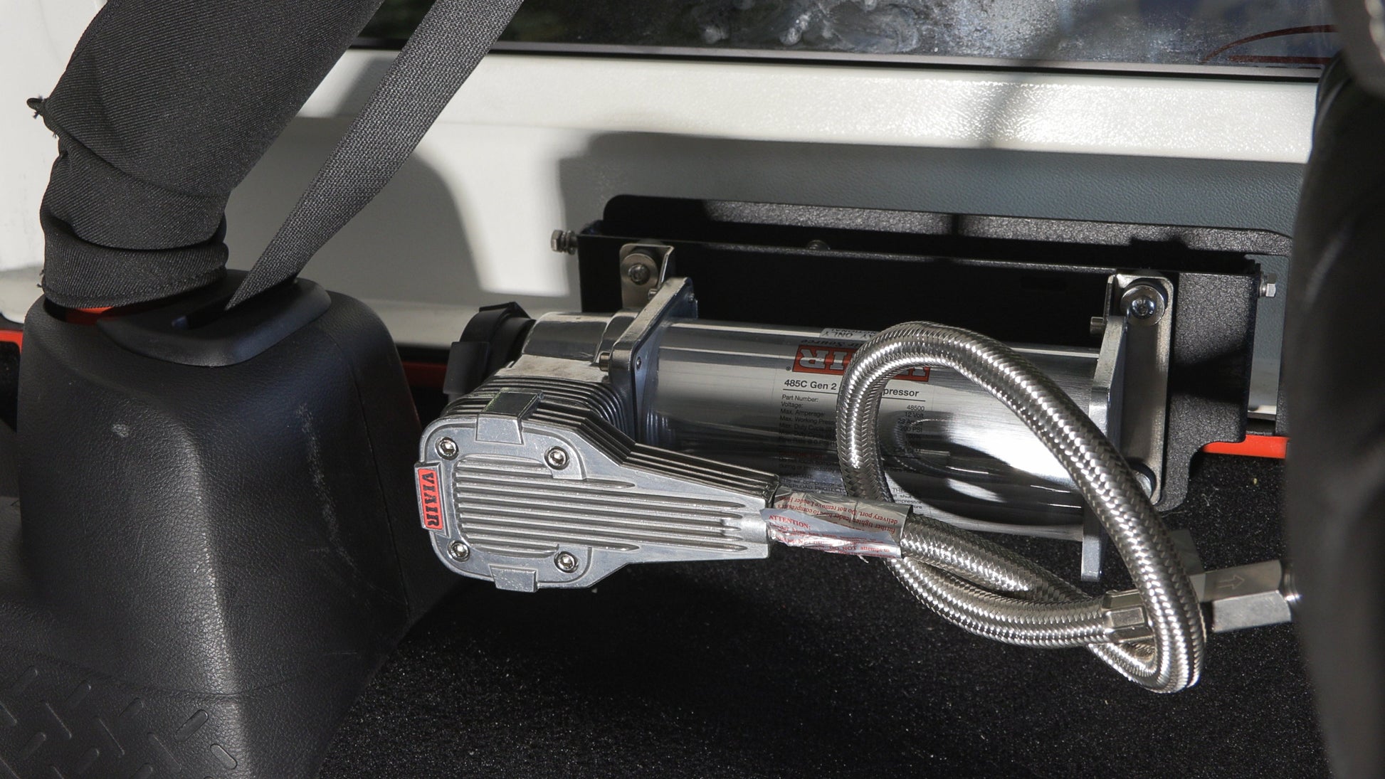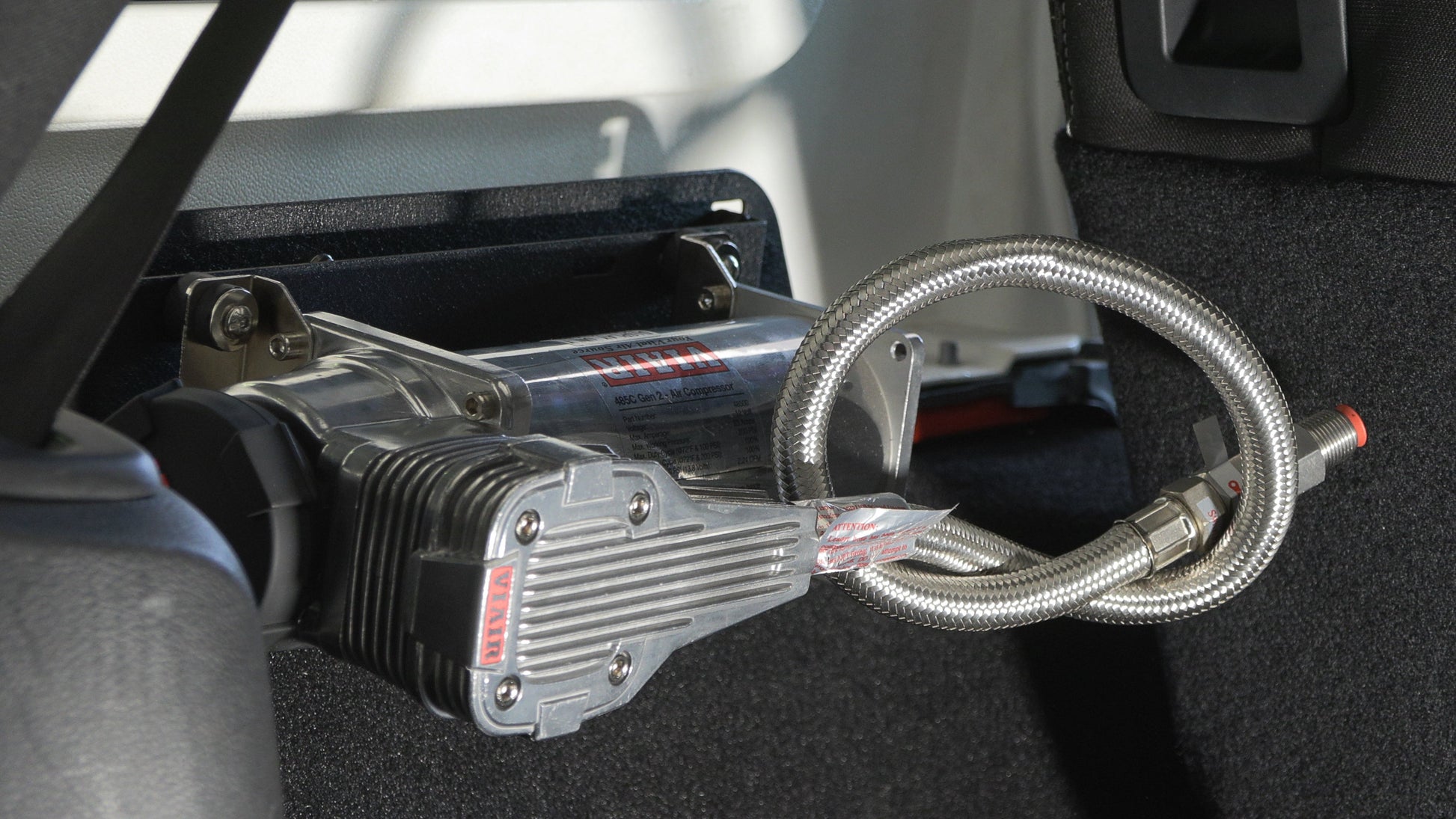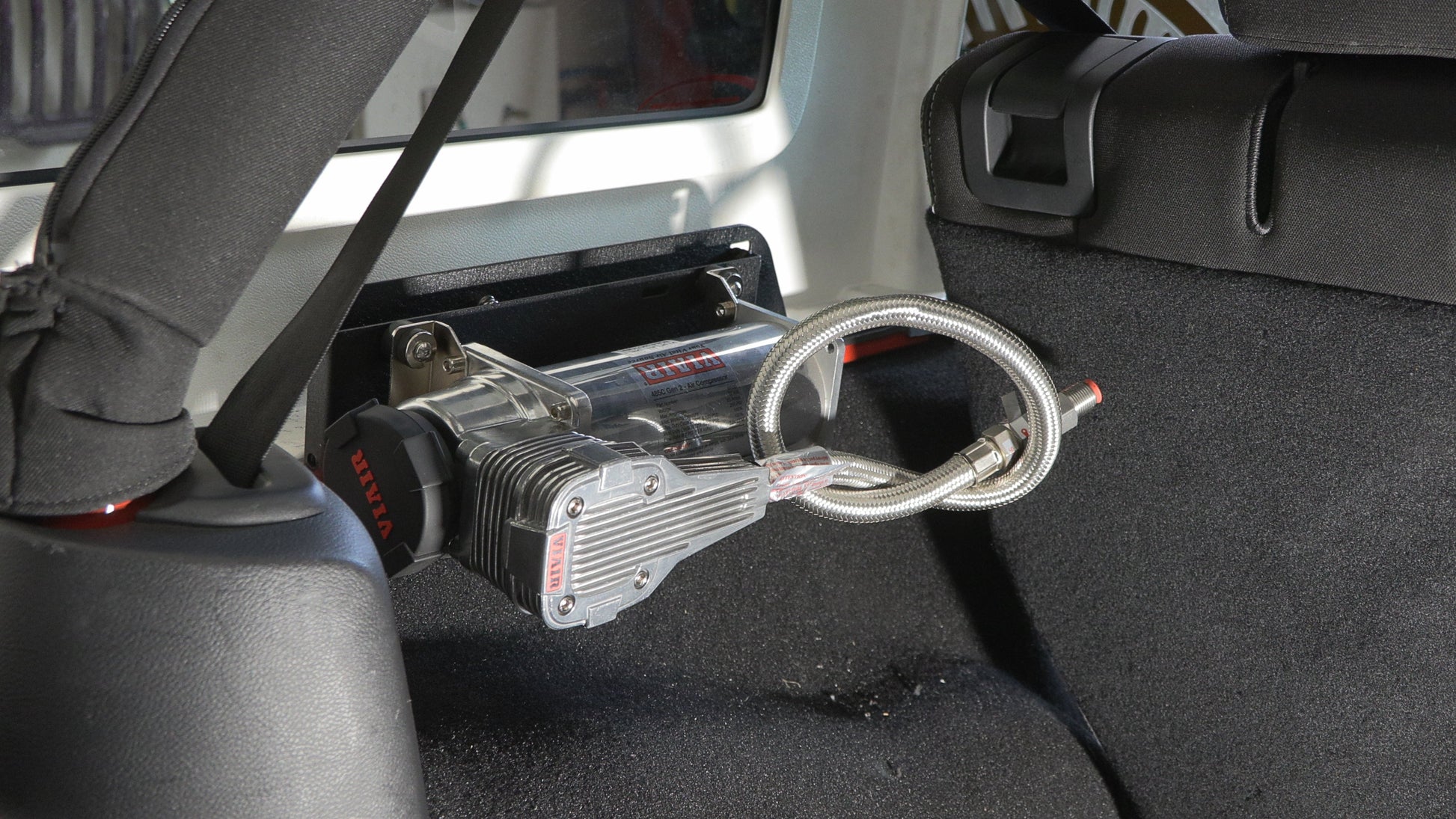 Well, you asked for it and our engineering team delivered. Introducing the "first to market" Compressor Mount that works with the most popular ARB and VIAIR Compressors. Our team designed this mount to work both the ARB CKMTA12/24 and VIAIR 4XXc Series Air Compressors. This innovative Compressor Mount takes advantage of what little space is available in the Trunk of a Jeep Wrangler JK, while still providing a secure and accessible mounting solution for essential off-road equipment.