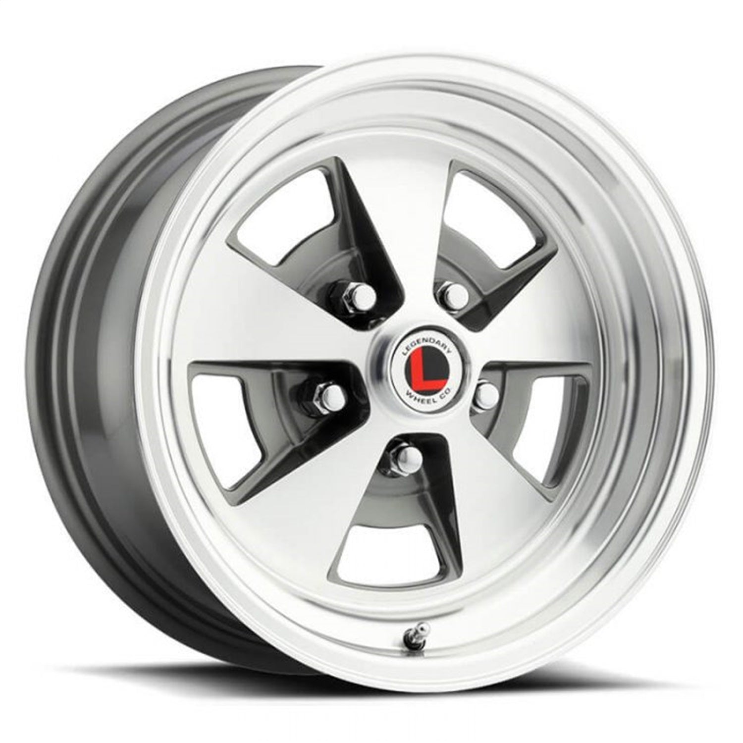 Even though the styling of this rim was taken directly from the early Mercury Cougars optional steel styled rim, this classic, 5 spoke design will look good on any Ford or Mercury car. Nick-named the "Flat Five" because of the shape of its spokes, you can choose from Black or Charcoal recesses for a nice contrast. Both versions feature a gloss clear coat for protection. Most of our optional Scott Drake hubcaps will fit these rims.