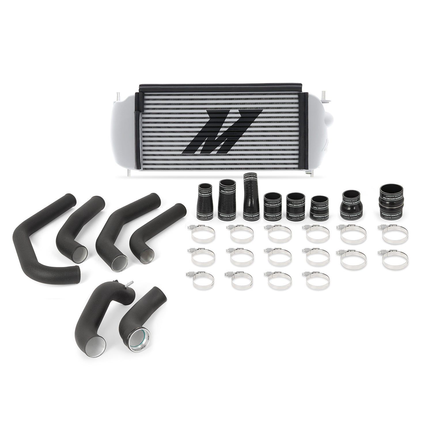 - TechSpec Includes: (1) Mishimoto Intercooler w/ Assembled Rubber Trim--(1) Aluminum Intercooler Pipe w/ CNC Quick-Disconnect Flange--(1) Aluminum Intercooler Pipe w/ CNC IAT Sensor Housing--(4) Aluminum Intercooler Pipes--(8) Silicone Boots w/ DuraCore Technology--(2) High-Torque Worm Gear Clamps--(14) Constant-Tension T-Bolt Clamps--Mounting Hardware--Mishimoto Lifetime Warranty